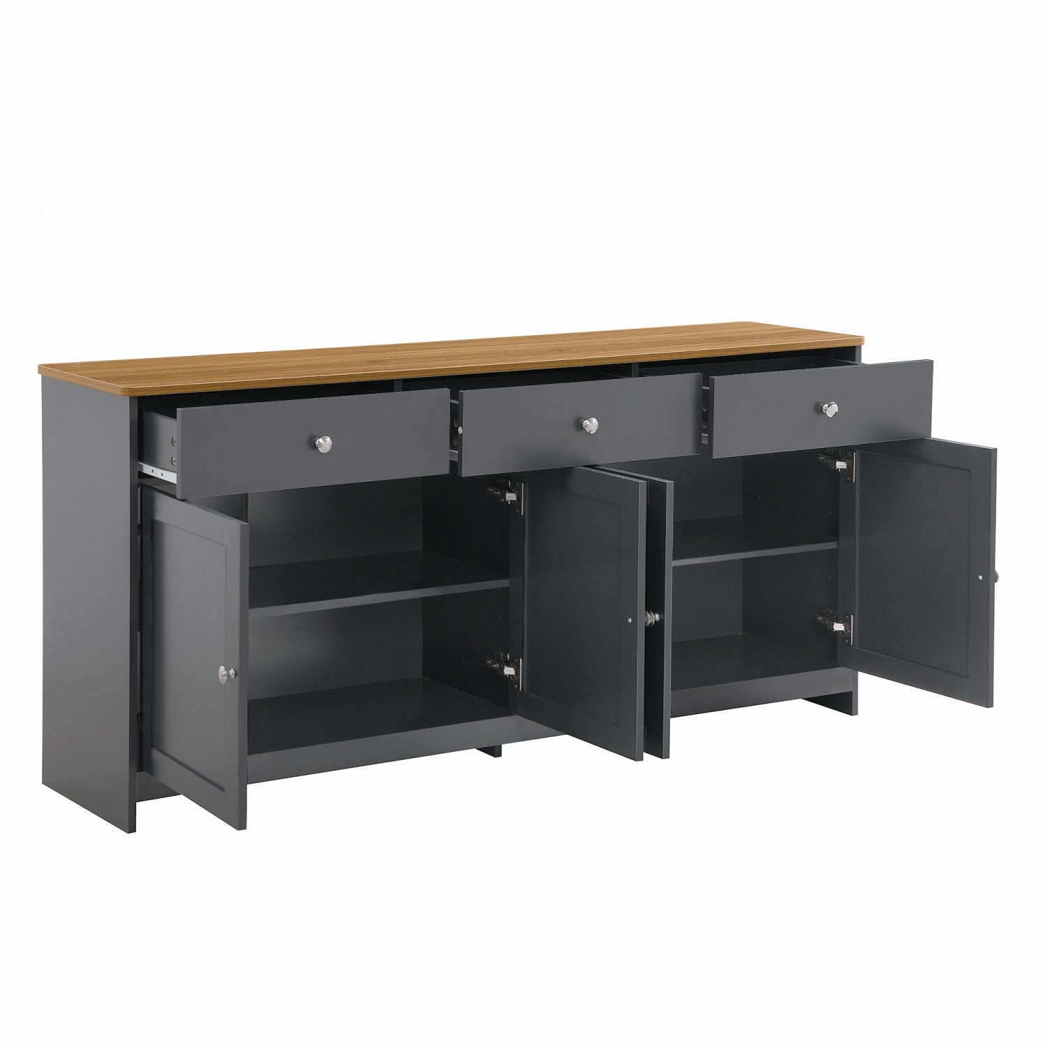 Grace Buffet en Bois Rustique de 55,1" avec Portes et Tiroirs, Gris