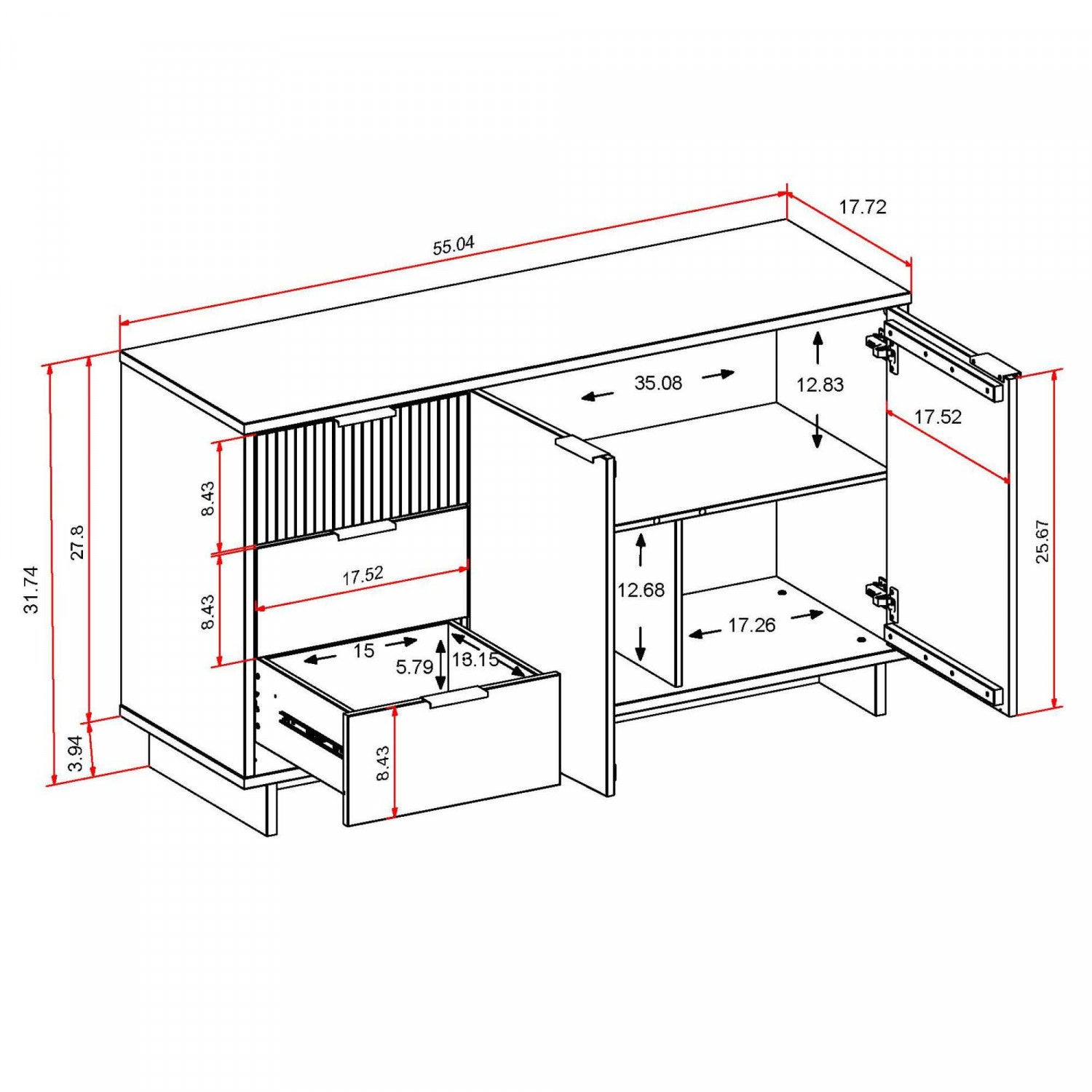 Buffet moderne Granville 55" en noir