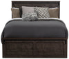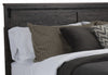 | Détails décoratifs | Une bande en métal foncé ornée de clous décoratifs arrondis borde l'extrémité supérieure de la tête de lit et du pied de lit. |