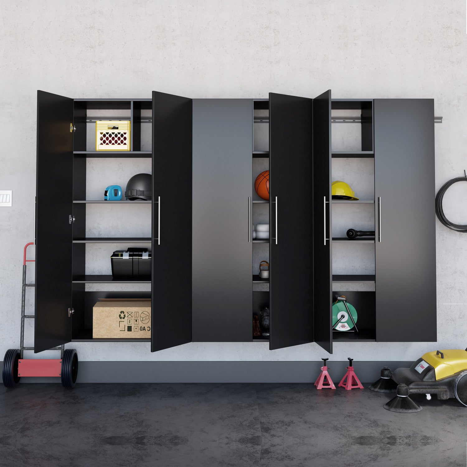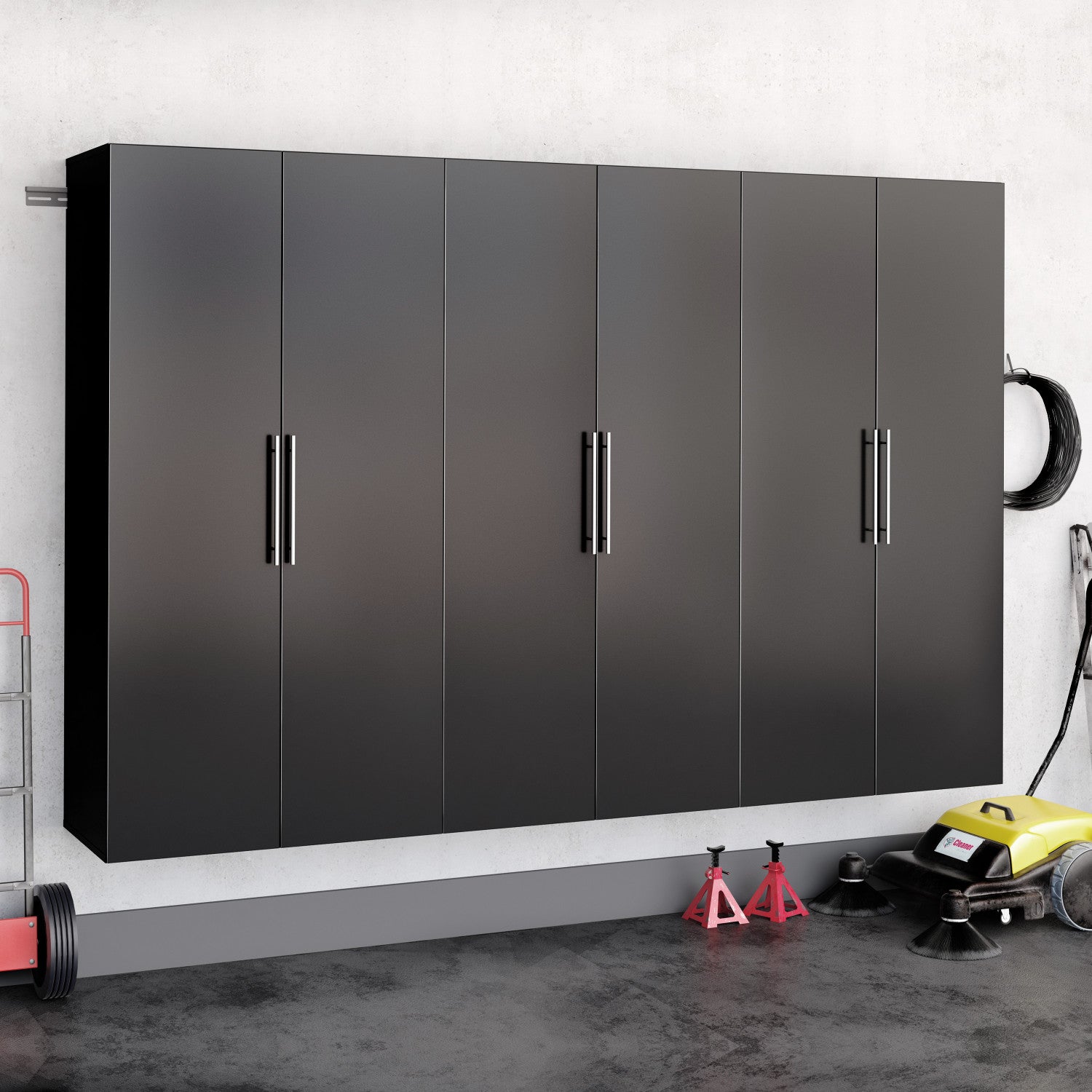 La collection d’armoires de rangement HangUps offre une polyvalence adaptee a vos besoins de rangement en constante evolution dans le garage, la buanderie, le bureau ou l’atelier. Les armoires se fixent solidement au mur grace a un systeme de rail et de crochets en metal robuste. La fixation murale permet de nettoyer facilement sous les armoires et protege vos articles ranges de l’eau et de la salete. La collection HangUps est fabriquee en bois composite stratifie et dotee de poignees en metal et de charnieres reglables. Ce produit est expedie pret a assembler et comprend tous les rails de suspension et les boulons de fixation. Ajoutez d’autres armoires de notre collection HangUps pour creer un systeme de rangement capable de transformer toute piece encombree en un espace organise. Garantie limitee du fabricant de 5 ans sur les pieces. Fabrique au Canada et conforme a toutes les normes de securite nord-americaines. Ensemble E comprend : 3 x grande armoire de rangement 36 po (BSCW-0708-2K).