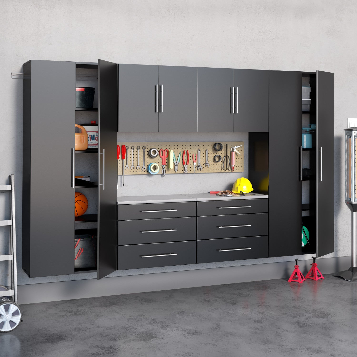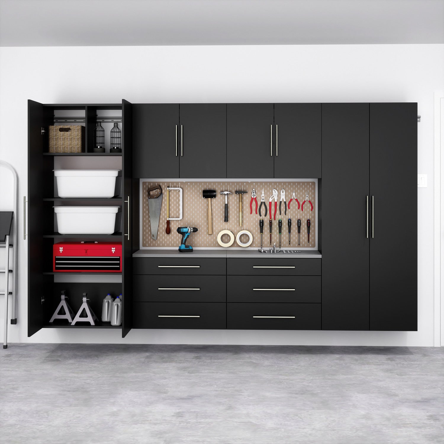 La collection d’armoires de rangement HangUps offre une polyvalence adaptee a vos besoins de rangement en constante evolution dans le garage, la buanderie, le bureau ou l’atelier. Les armoires se fixent solidement au mur grace a un systeme de rail et de crochets en metal robuste. La fixation murale permet de nettoyer facilement sous les armoires et protege vos articles ranges de l’eau et de la salete. La collection HangUps est fabriquee en bois composite stratifie et dotee de poignees en metal et de charnieres reglables. Ce produit est expedie pret a assembler et comprend tous les rails de suspension et les boulons de fixation. Ajoutez d’autres armoires de notre collection HangUps pour creer un systeme de rangement capable de transformer toute piece encombree en un espace organise. Garantie limitee du fabricant de 5 ans sur les pieces. Fabrique au Canada et conforme a toutes les normes de securite nord-americaines. Ensemble I comprend : 2 x armoire murale de rangement superieur 30 po (BUSW-0707-1), 2 x armoire de base a 3 tiroirs (BSCW-0730-1), 2 x grande armoire de rangement 30 po (BSCW-0707-2K).