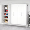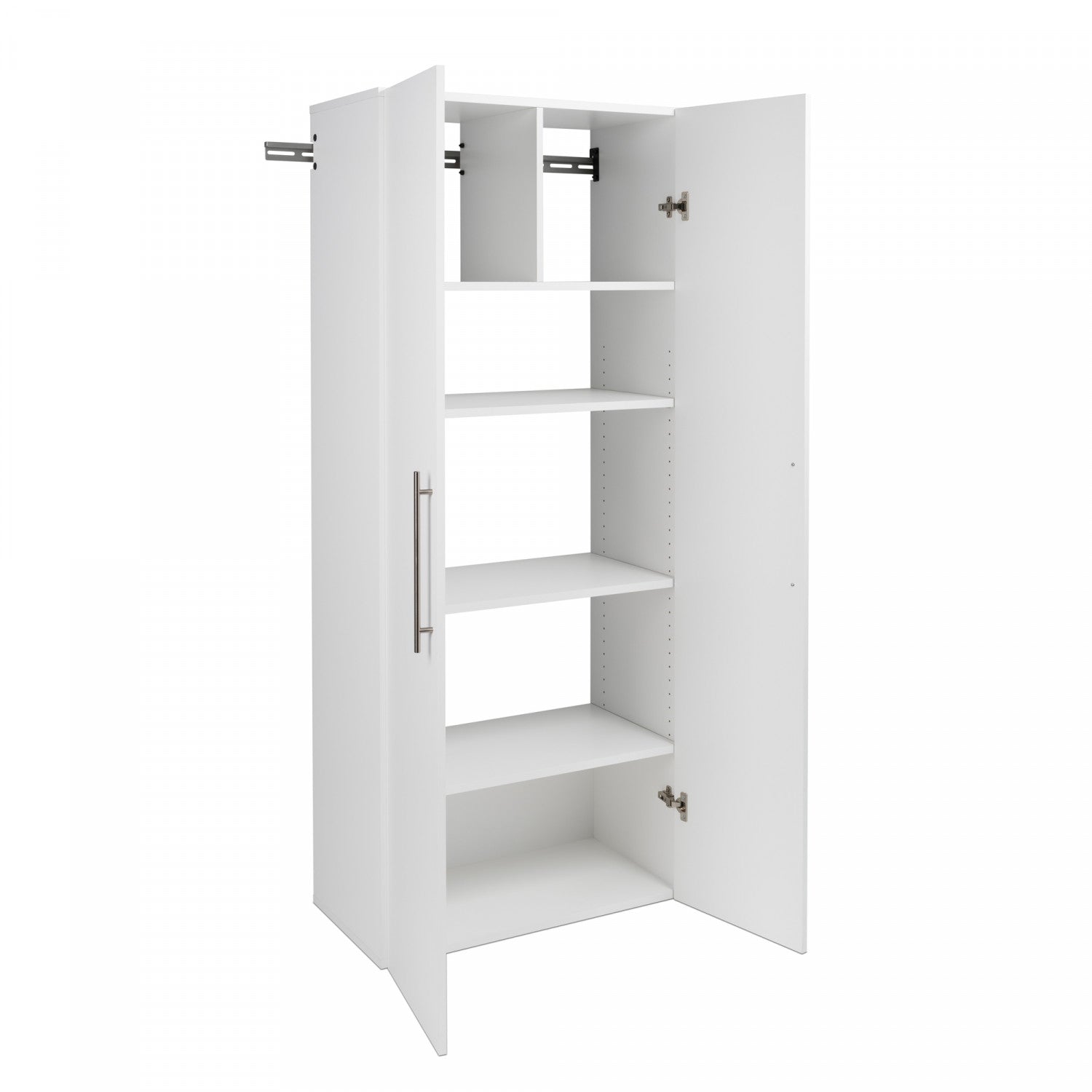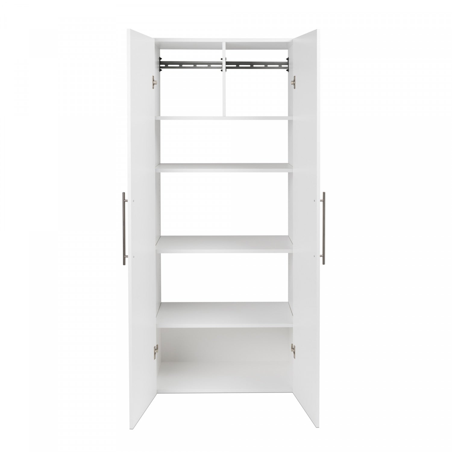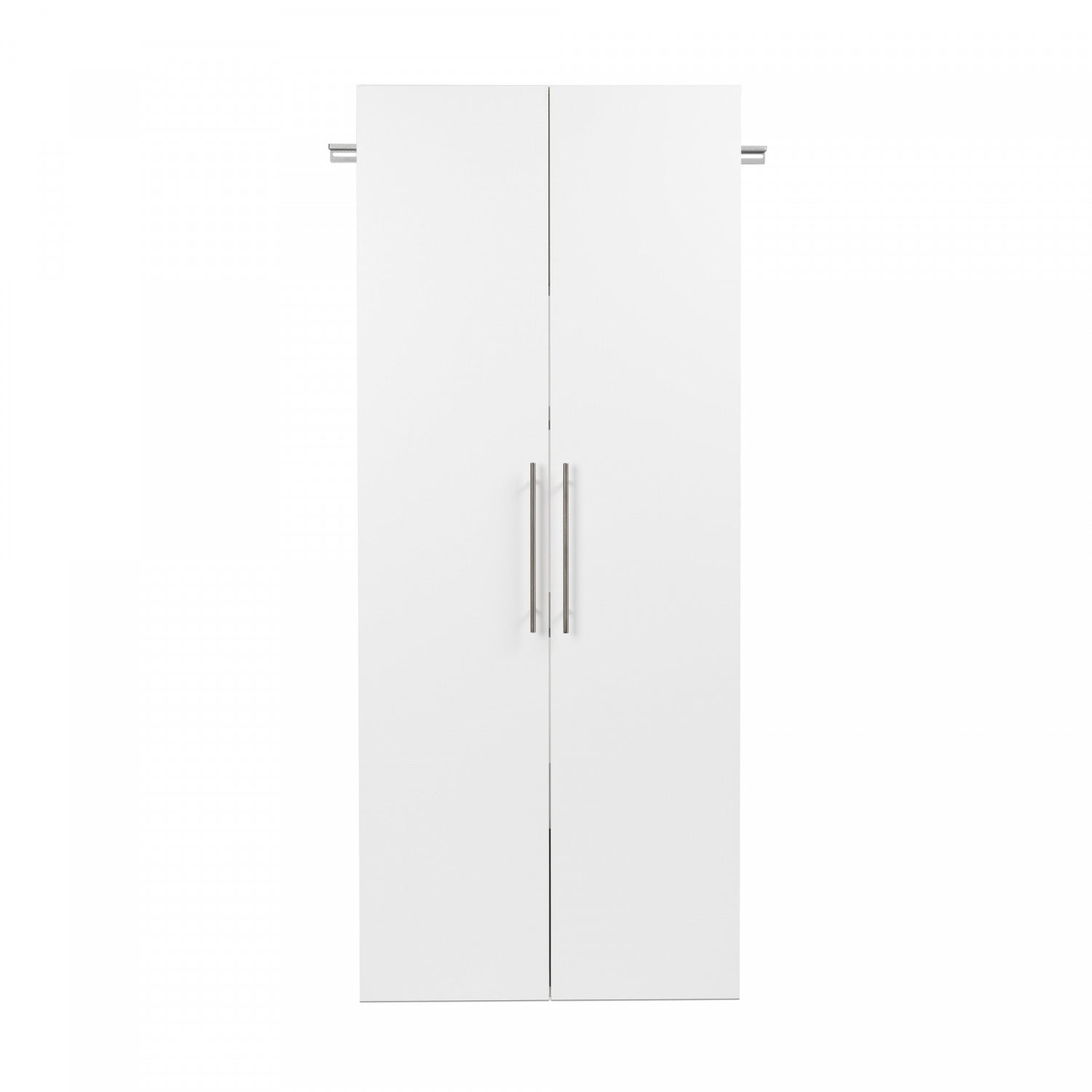 Accueillez un nouveau systeme d’organisation avec la grande armoire de rangement Prepac Hang-Ups. Cette armoire murale comprend deux portes elegantes aux lignes epurees montees sur des charnieres reglables, trois tablettes reglables et une tablette fixe avec separateur central, offrant une flexibilite adaptee a vos besoins de rangement en constante evolution. Dotee d’une finition en stratifie blanc eclatant et de deux poignees en metal finition nickel satine, cette armoire utilitaire polyvalente apportera un rangement discret partout. Concue pour etre fixee au mur de votre garage, buanderie, sous-sol, atelier ou bureau grace au systeme de rail et de crochets en metal robuste inclus, vos articles ranges seront proteges des debris et le sol sera plus facile a nettoyer. La grande capacite interieure offre un espace pour vos outils, linges, equipements de jardinage, documents, vetements et plus encore, tout en les gardant compartimentes et exempts de desordre. Cette armoire durable est livree a plat et prete a etre assemblee a la livraison, avec un livret d’instructions, des rails de suspension et des boulons de fixation inclus. Cette unite d’etageres organisatrice est fabriquee en bois composite stratifie durable, non toxique et conforme a la norme CARB-2. Mesurant 16 po P x 30 po l x 72 po H, il n’y a aucune limite a ce que vous pouvez ranger en toute securite. Associez cette unite a d’autres articles de la collection Hang-Ups.