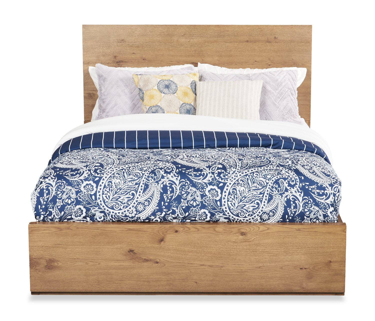 Ensemble de chambre à coucher Olivia 5 pièces fabriqué au Canada avec lit de rangement, commode et miroir, blanc - format grand lit