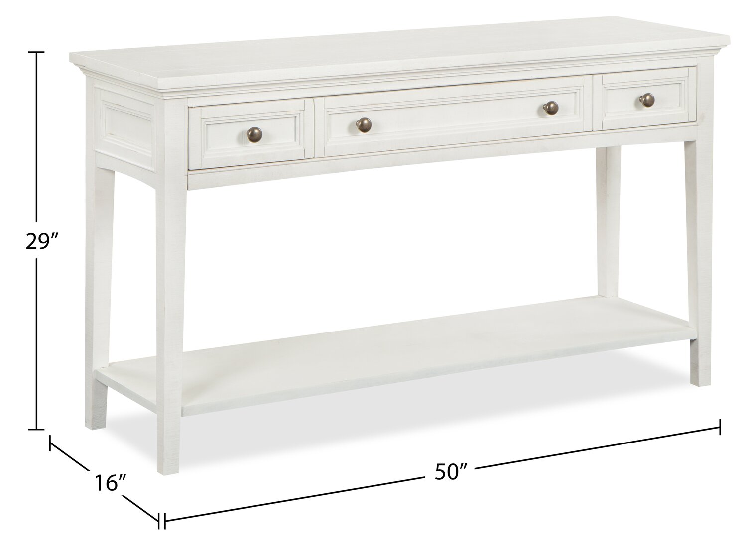 Largeur : 50 po (127,0 cm) Hauteur : 29 po (73,7 cm) Profondeur : 16 po (40,6 cm)