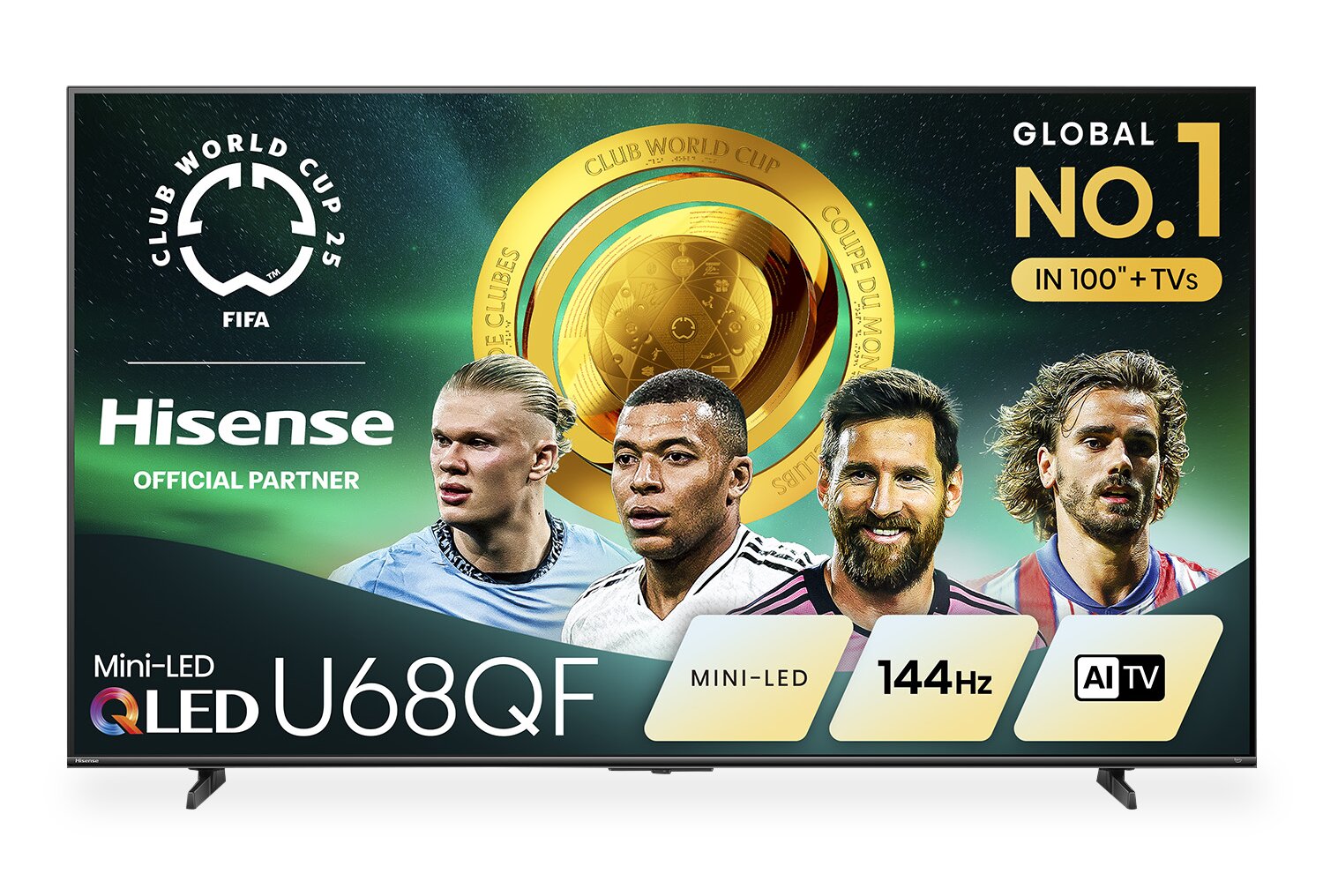 Technologie QLED : Mini DEL : Expérience de jeu par excellence : Son Dolby AtmosMD (2.1 canaux avec caisson d’extrêmes graves intégré) : Convertisseur ascendant IA HDR 4K : Téléviseur Hisense avec IA : Gradation locale à matrice complète : Solution HDR total : |