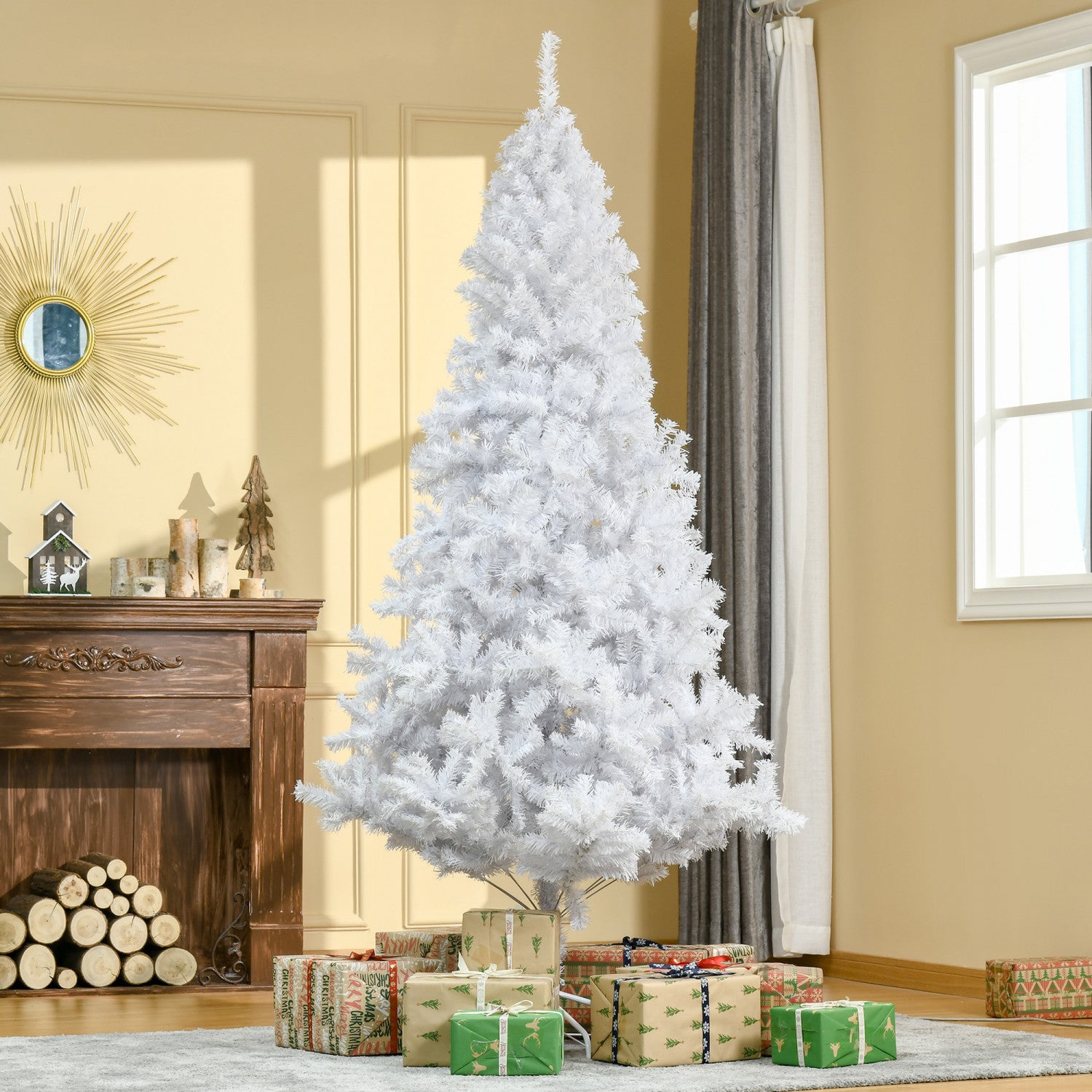 Homcom Decoration De Vacances Sapin De Noel De 7 Pieds Avec Support - Blanc