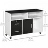 | Key Features | ● Grand bureau pour imprimante. Grande capacite de rangement avec 3 etageres, 2 tiroirs et une armoire pour classeurs, cahiers, stylos, magazines et autres fournitures de bureau ● Conception verrouillable, garde vos fichiers en securite lorsque vous etes absent ● Mobilite facile, 4 roulettes a roulement doux avec 2 freins de verrouillage, peuvent traduire les choses ● Le design minimaliste nordique avec une ligne epuree se marie bien avec un decor de maison et de bureau contemporain ou moderne ● Fabrique en panneaux de particules pour la robustesse ● La surface lisse est facile a nettoyer avec un chiffon humide ● Rangement ideal pour ranger votre bureau, cuisine, chambre a coucher ● Assemblage requis |