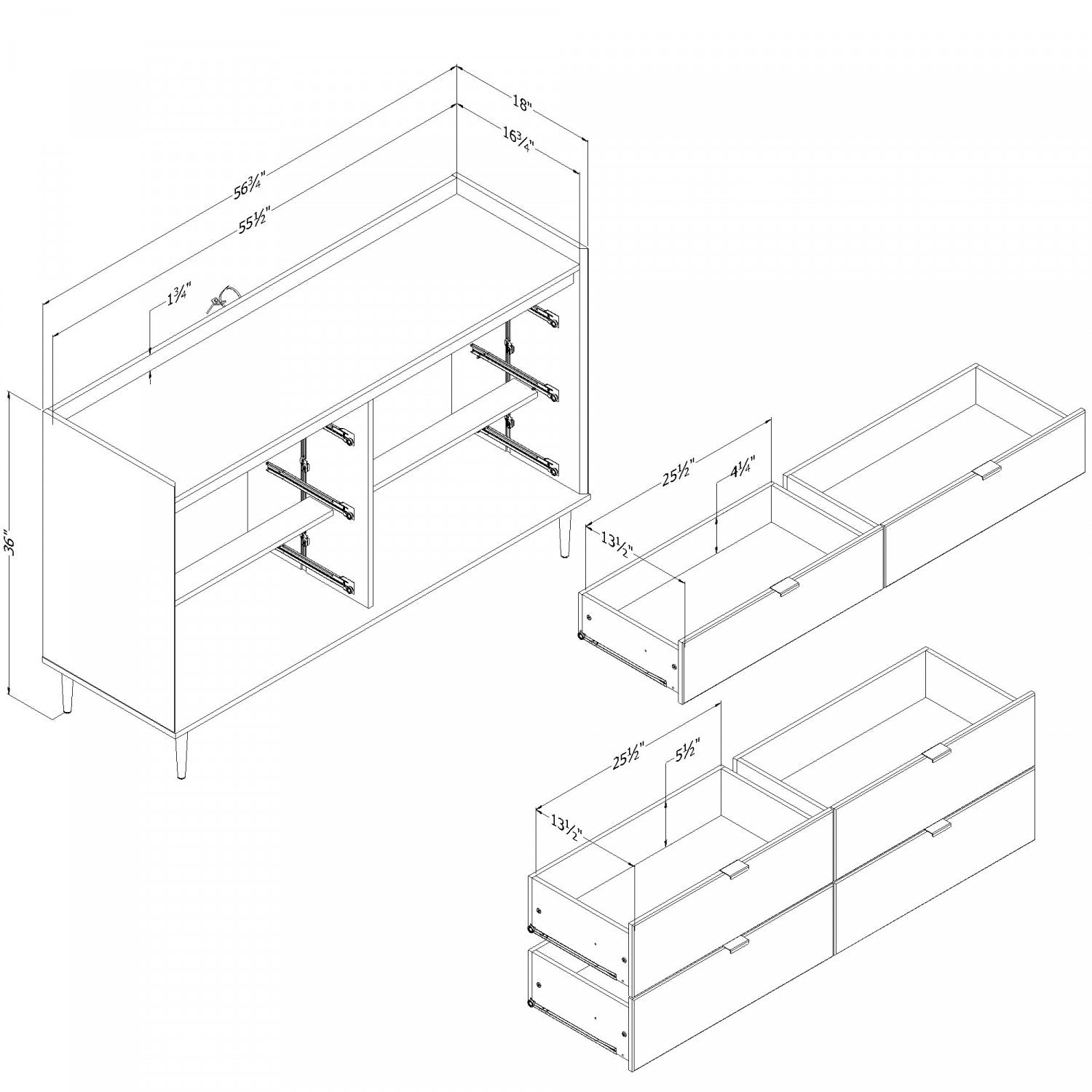 Largeur : 56,75 po (144,1 cm) Hauteur : 36 po (91,4 cm) Profondeur : 18 po (45,7 cm)