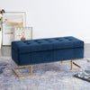 Conception : Pouf de style banc avec rangement et orné d’un fini bleu marine et de clous décoratifs.
