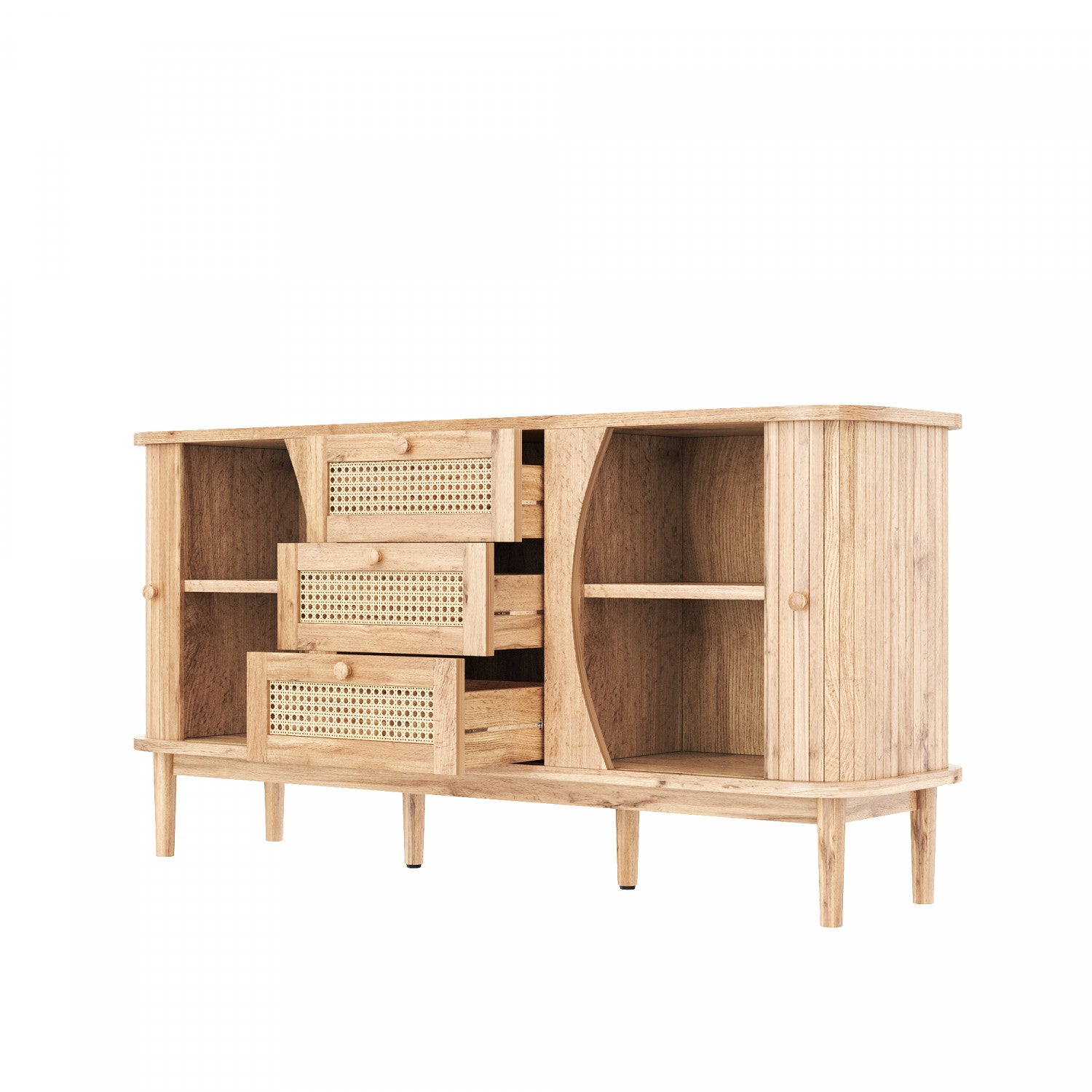 James 55.3" Cabinet Moderne Minimaliste en Bois avec Portes Coulissantes et Etageres Ajustables, Naturel