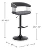 Tabouret bar Java en tissu de cuir végétalien et en métal avec siège pivotant et réglable - gris