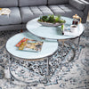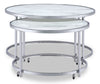 | Détails décoratifs | Une armature étincelante en chrome s'agence avec le dessus de table d'apparence marbre pour une allure brillante. |