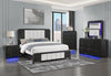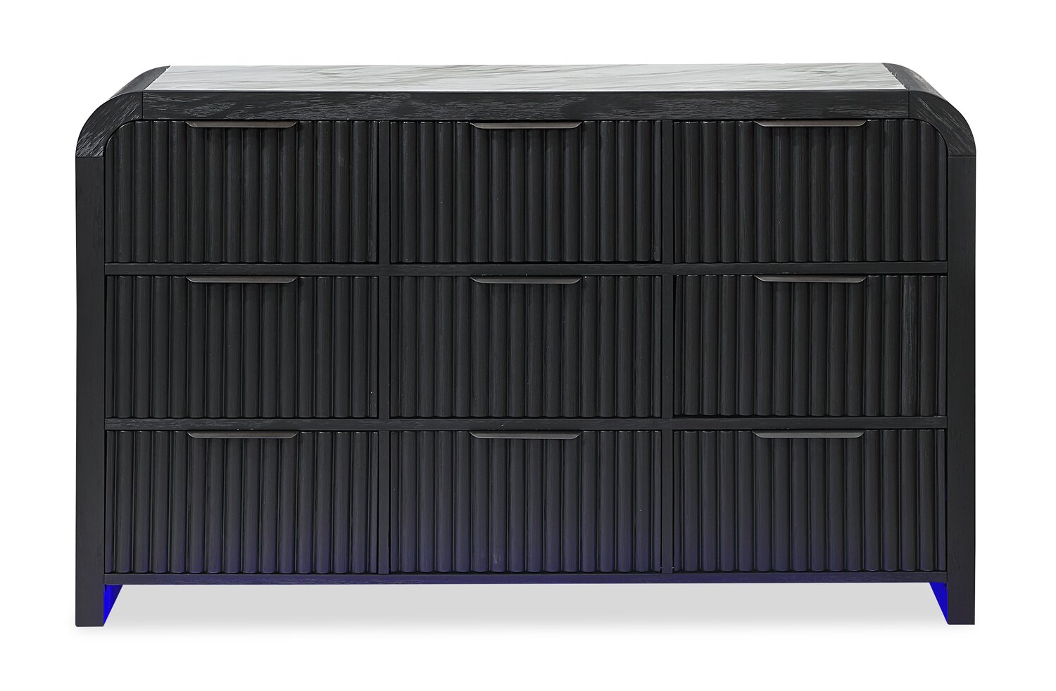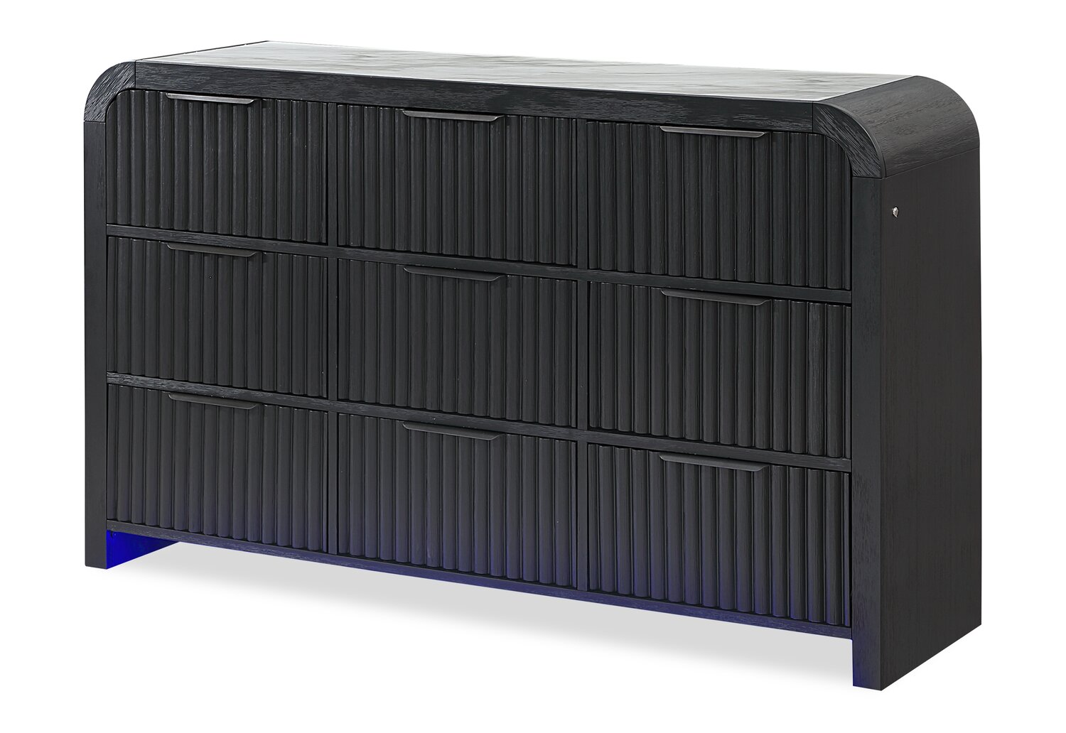 Commode de chambre à coucher cannelée moderne Kaleo de 58,5 po (L) x 17,5 po (H) à 9 tiroirs avec éclairage à DEL - noire