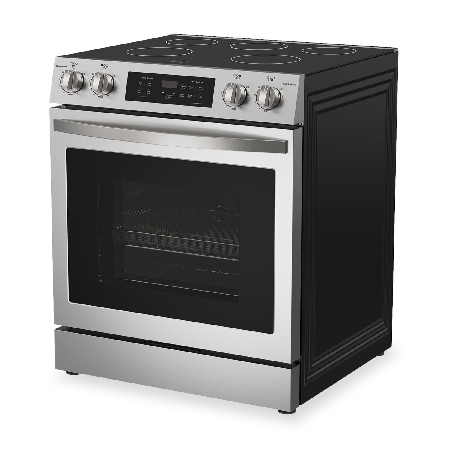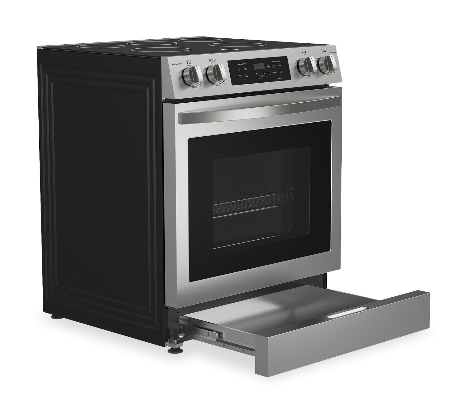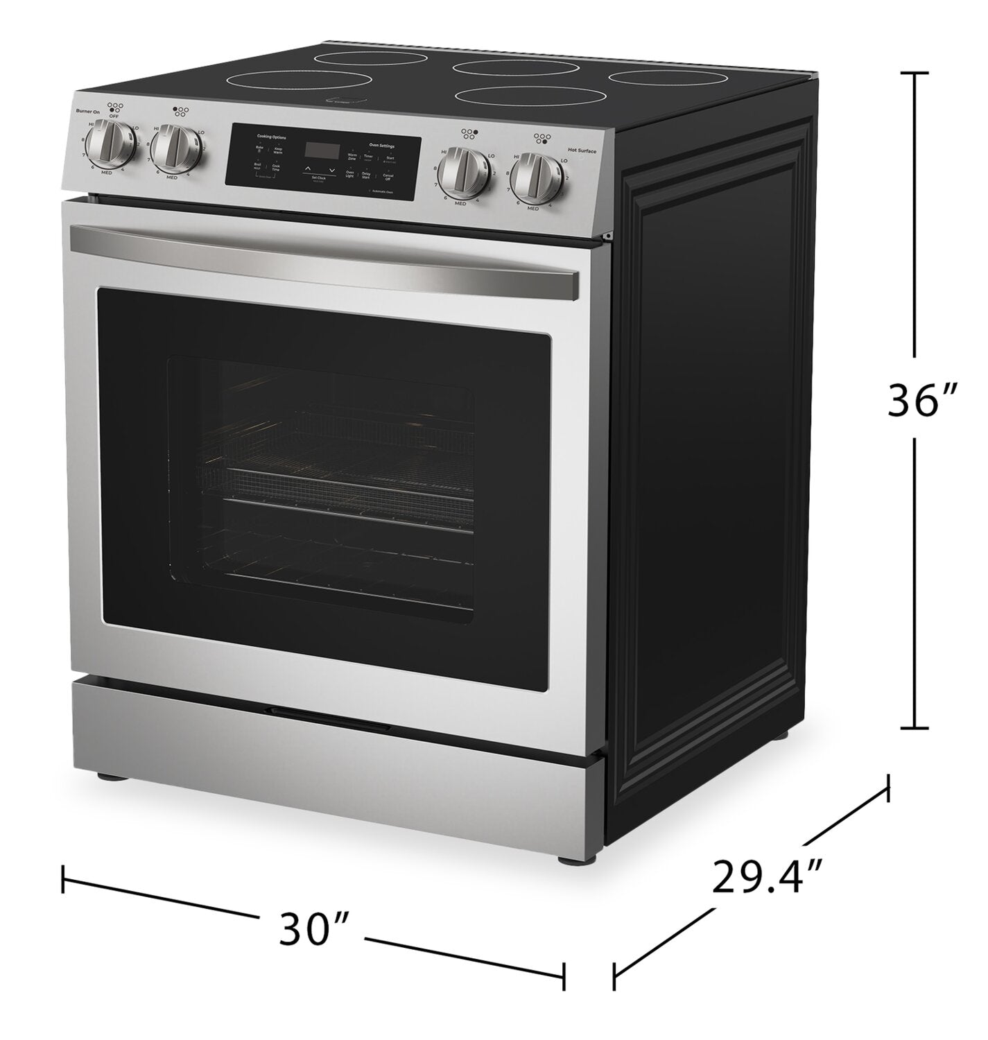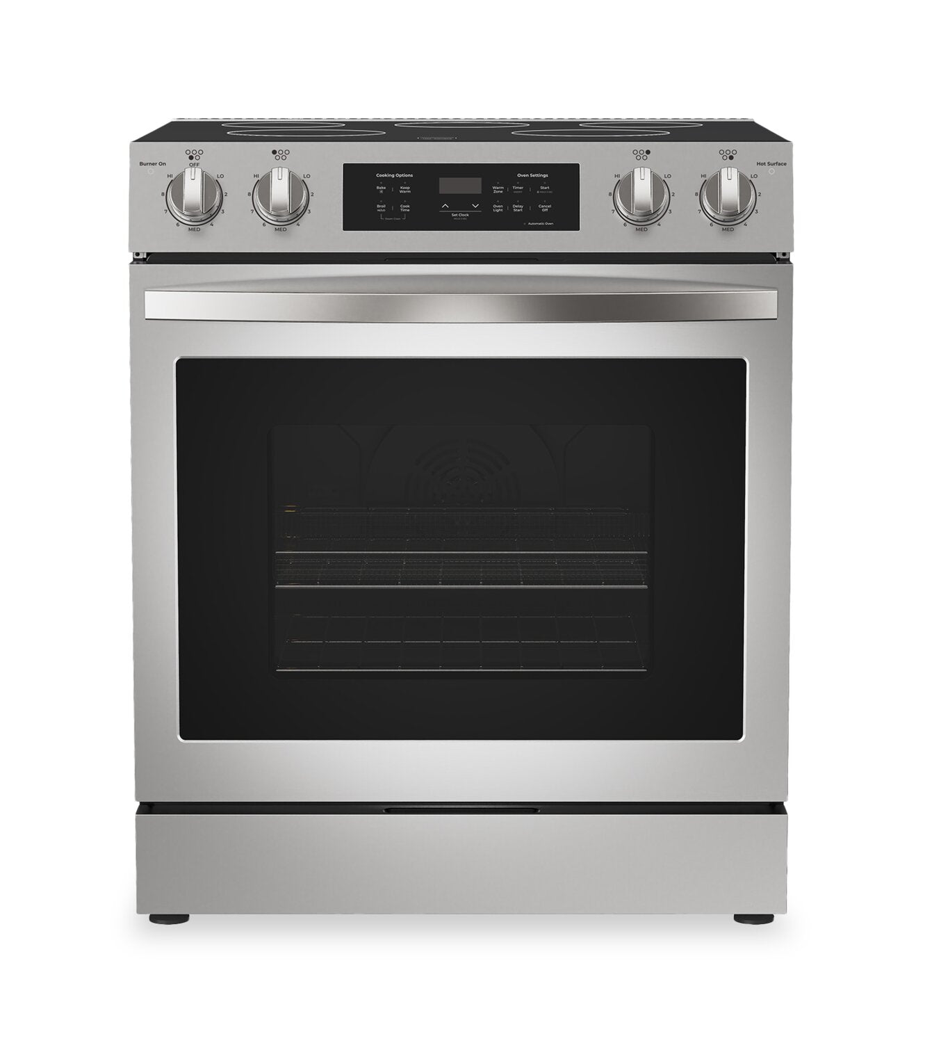 Capacité de 6,1 pi3 : Commandes de four numériques : Convection véritable : Cinq éléments sur la surface de cuisson : Tiroir de rangement : Fonction de nettoyage à la vapeur : |