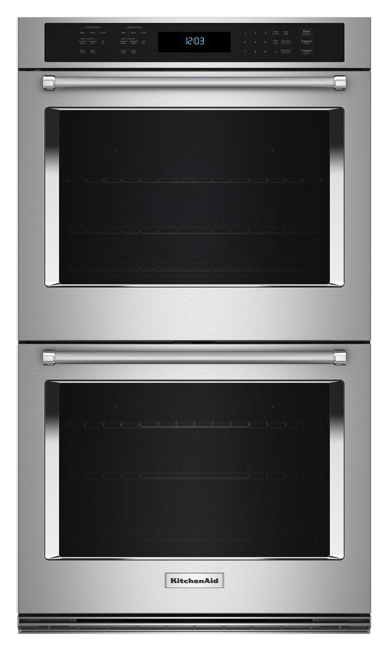 Capacité de four double : Mode friture à air : Panier pour friture à air chaud lavable au lave-vaisselle : Système de convection véritable Even-HeatMC : Thermomètre à viande intégré : Grilles coulissantes à glissières SatinGlideMC : Système de conversion EasyConvectMC : Préchauffage Even-HeatMC : Portes à fermeture automatique : |