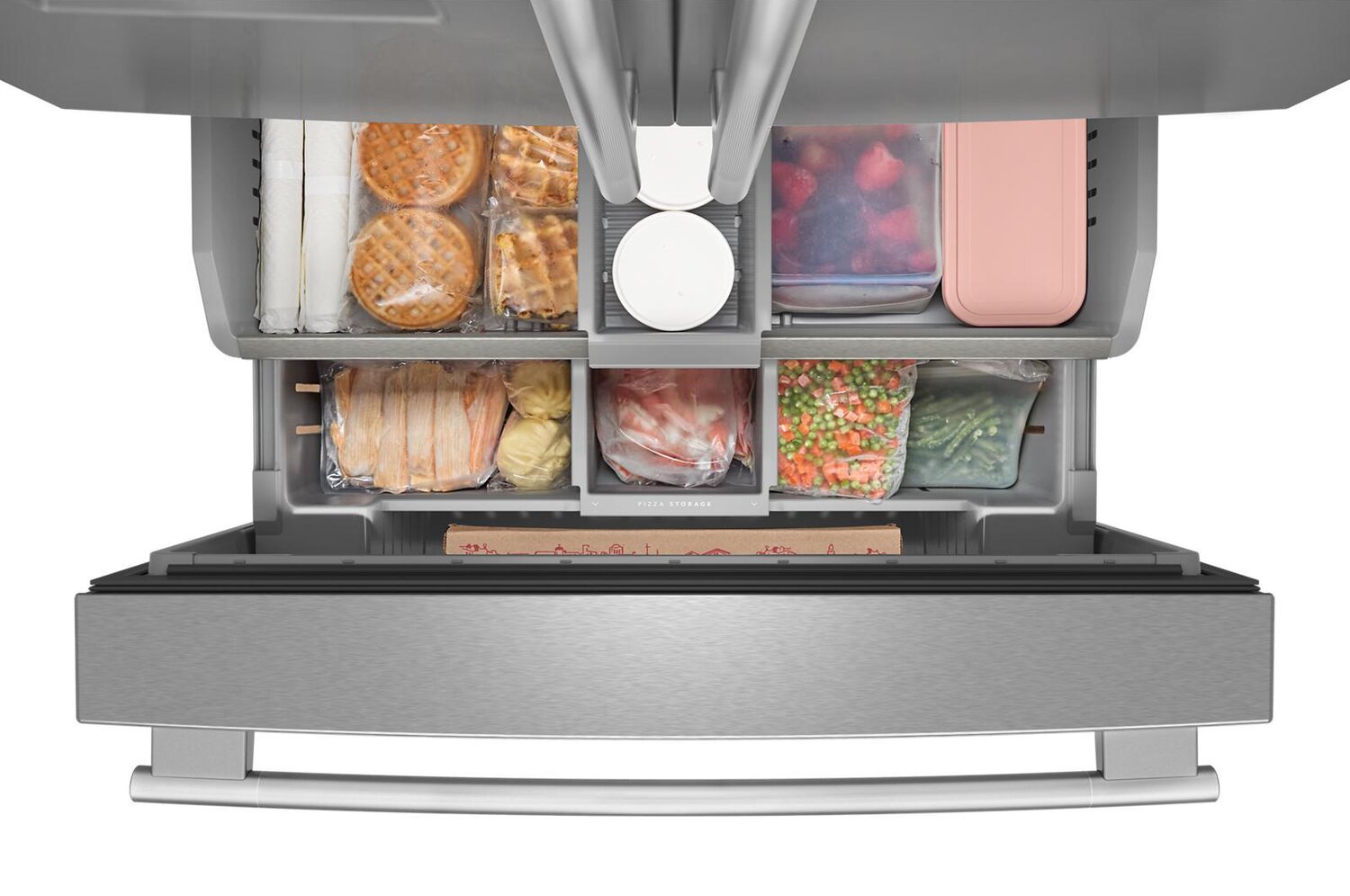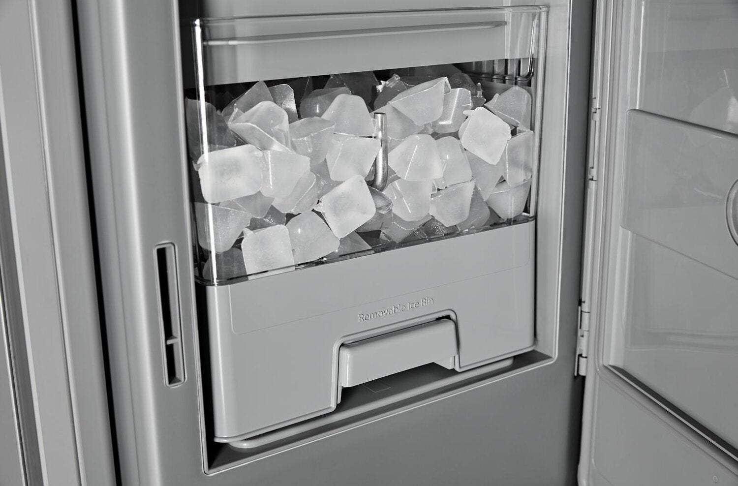 Généreuse capacité de 30 pi³ : Distributeur d’eau et de glaçons à l’extérieur : Plateau de rangement coulissant d’apparence bois : Production maximale de glaçons : Style personnalisable : Filtration d’eau everydropMD : |