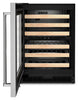 Apparence encastrée luxueuse : Capacité de 46 bouteilles de vin standards : Deux zones de température régulée : Tablettes SatinGlideMD à extension complète : Éclairage à DEL activé par le mouvement : Porte en verre résistant à la chaleur et protégé contre les rayons UV : Commandes tactiles rétroéclairées : |