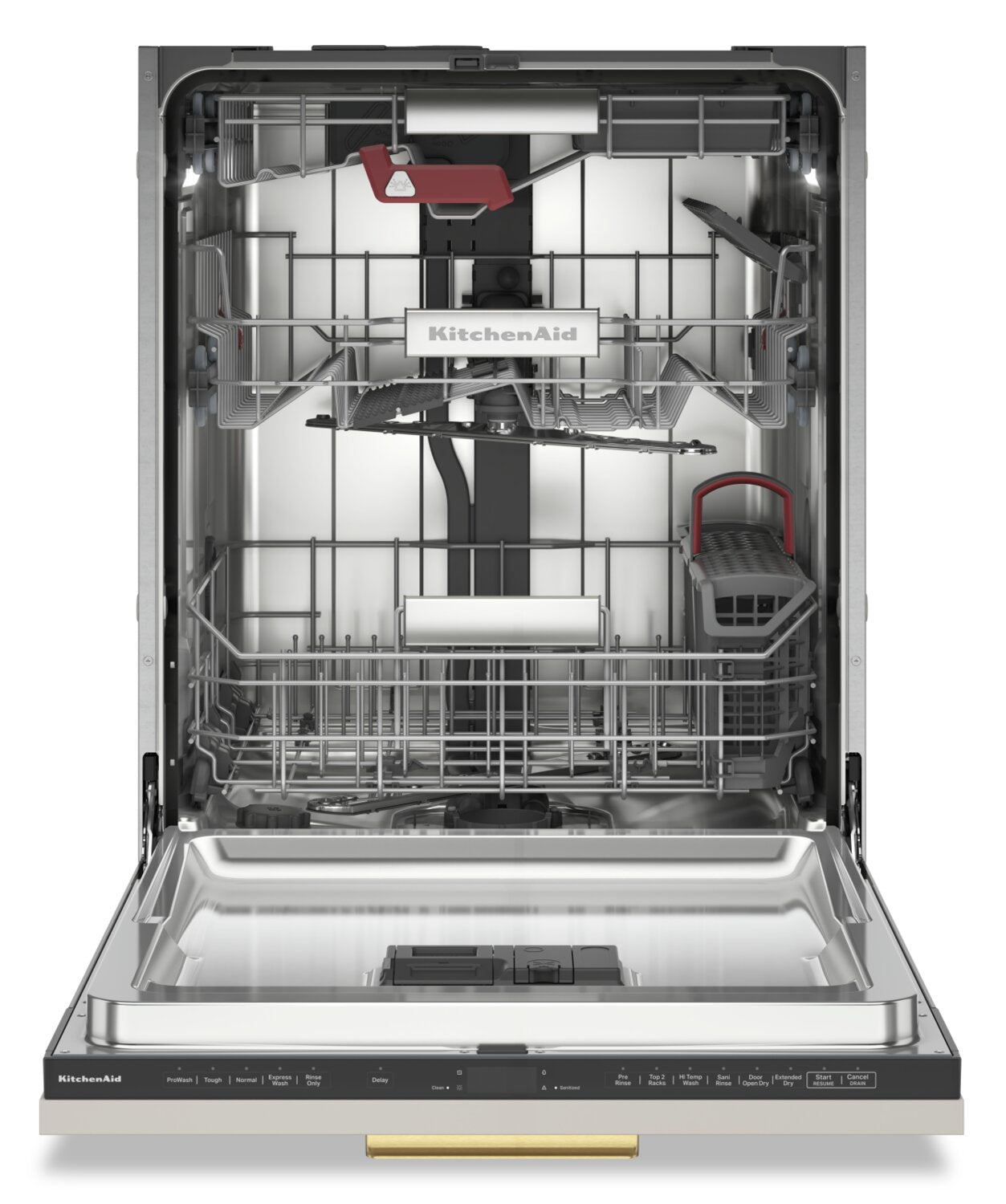 Conception à panneau personnalisable : Conception affleurée : Troisième panier FreeFlexMC : Système de séchage avec ouverture automatique de la porte : Système de filtration triple : Indicateur du temps restant du cycle de nettoyage : Cycle ProWashMC : Fonctionnement à 39 dB : Adoucisseur d'eau intégré : |