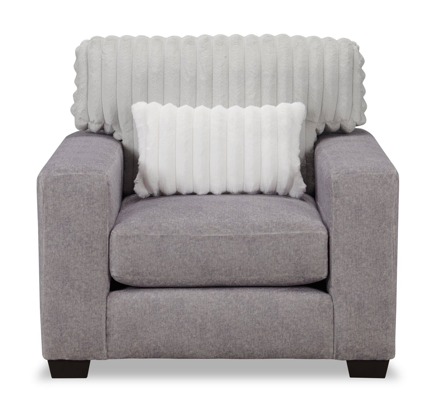 | Détails décoratifs | Le polyester gris clair à rainures enveloppe le coussin de dossier et le coussin décoratif afin de créer une apparence unique de tissus contrastants. |