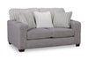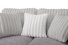 | Détails décoratifs | Le polyester gris clair à rainures enveloppe le coussin de dossier et les coussins décoratifs afin de créer une apparence unique de tissus contrastants. |