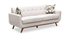 | Détails décoratifs | Les coussins de dossier capitonnés et la base de siège arrondie sont chic et arborent une apparence unique. De plus, les pattes effilées en bois complètent le revêtement à merveille. |