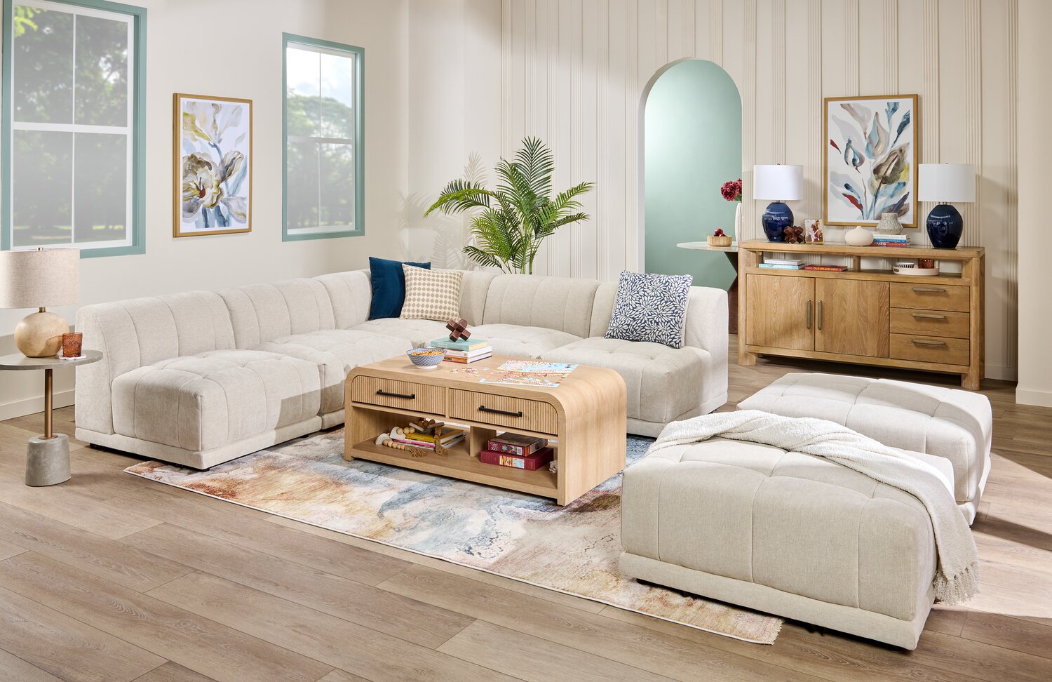 | Vendu séparément | Fauteuils sans accoudoirs, fauteuils en coin et poufs modulaires Oaklyn additionnels. |