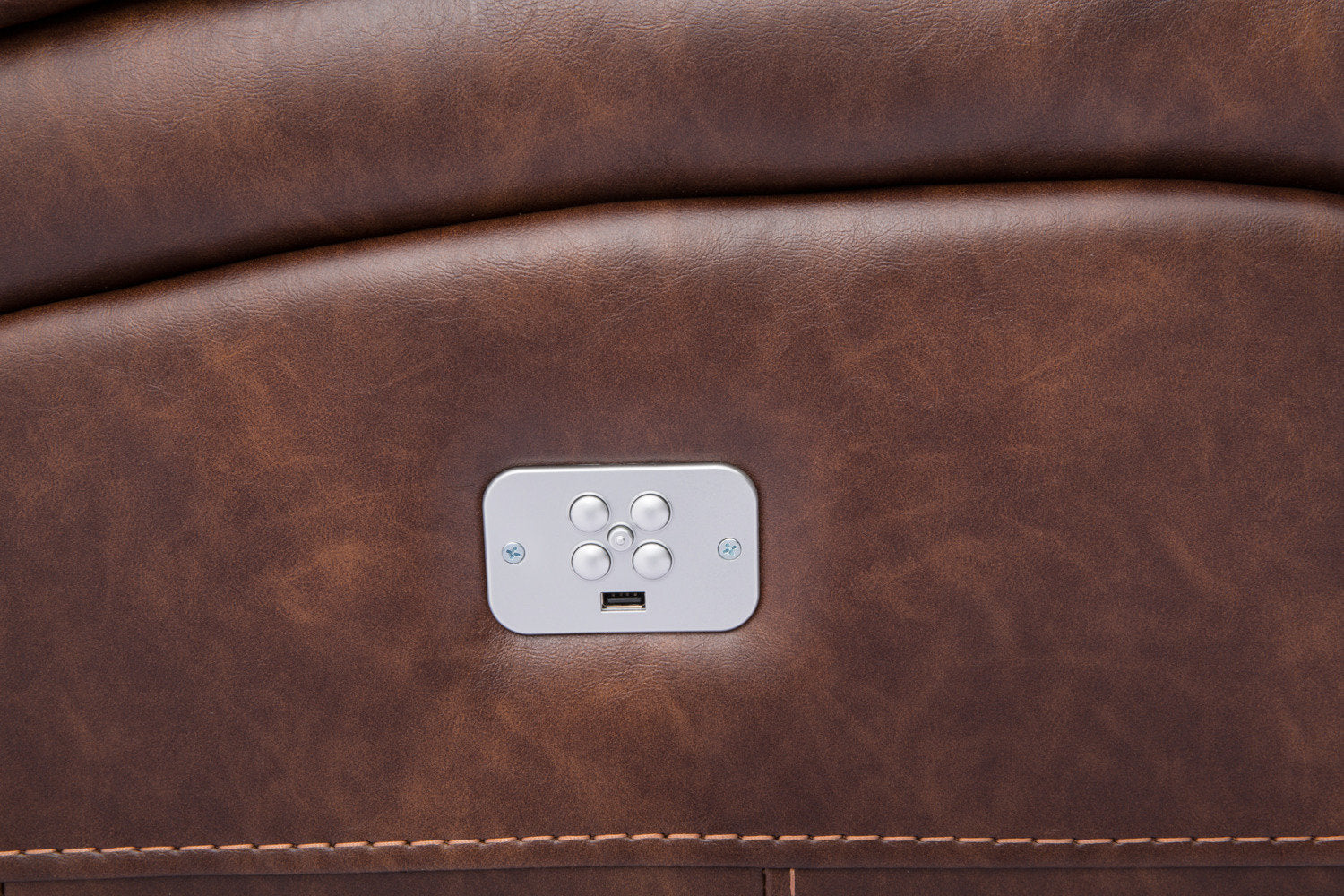- Arborant d'un fini brun pacane, le tissu d'apparence cuir est chic et rafraîchissant.