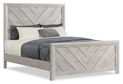 Lit à panneaux Lark blanc rustique avec tête de lit, cadre et motif de chevrons - format lit double