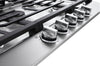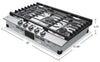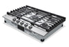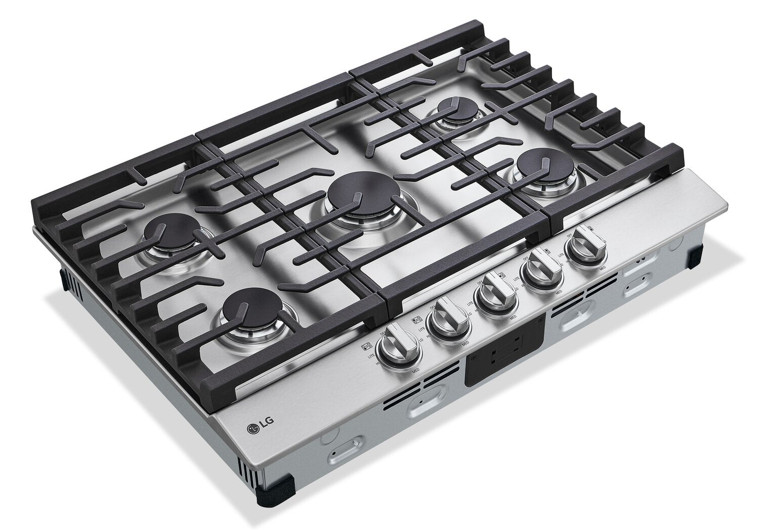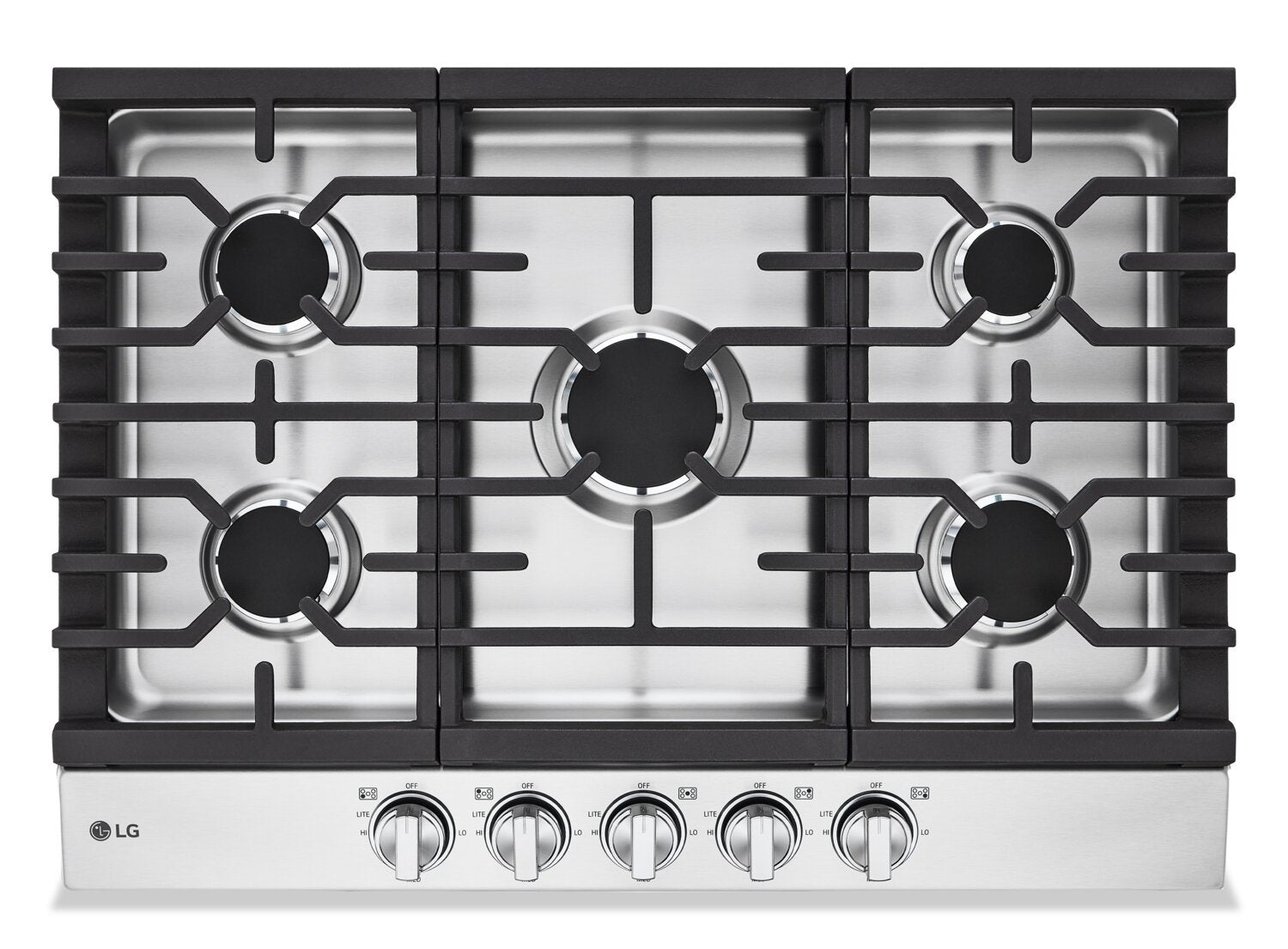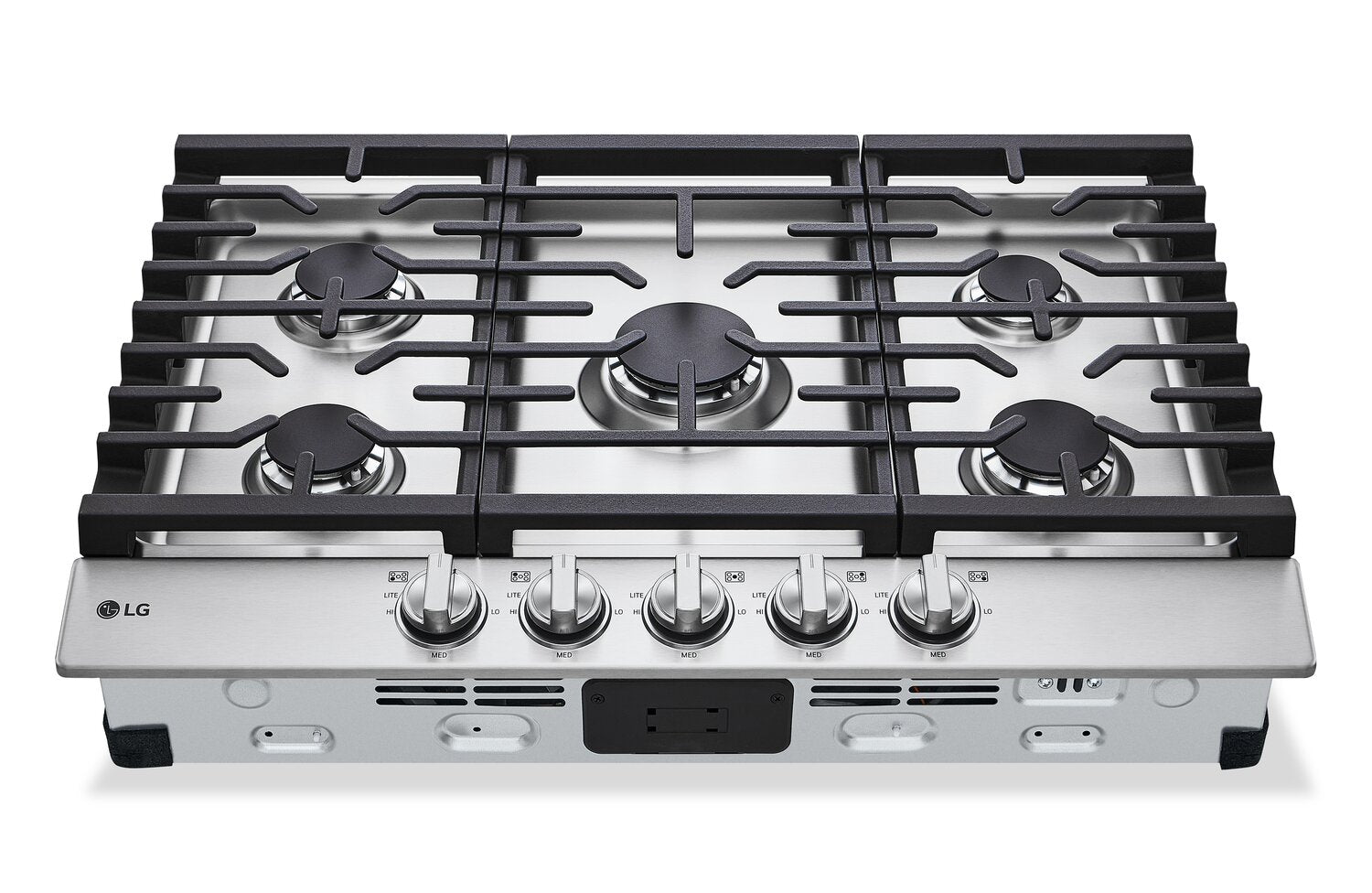 Cinq brûleurs à gaz scellés : Brûleur UltraHeatMC de 20 000 BTU : Grilles continues en fonte : Surface de cuisson EasyCleanMD en acier inoxydable : Système de rallumage automatique : |