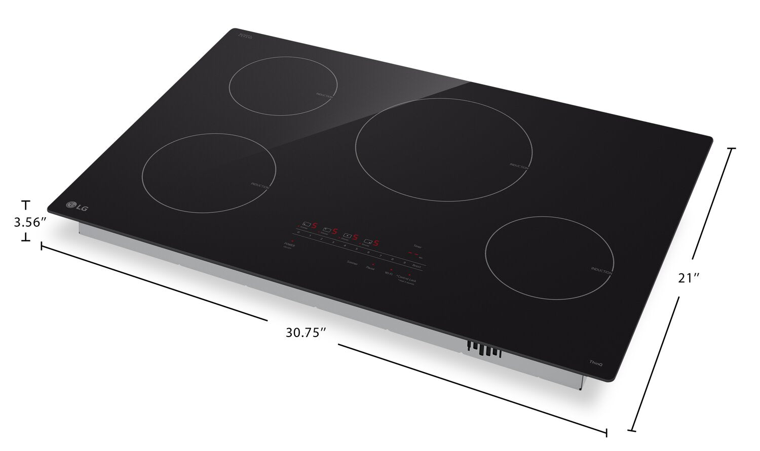 4 éléments à induction : Éléments UltraHeatMC de 4 300 W : Augmentez votre puissance de cuisson : Commandes en verre SmoothTouchMC : Application ThinQMD de LG : Obtenez le mijotage parfait d’une simple pression : Indicateur de compatibilité de la batterie de cuisine : |