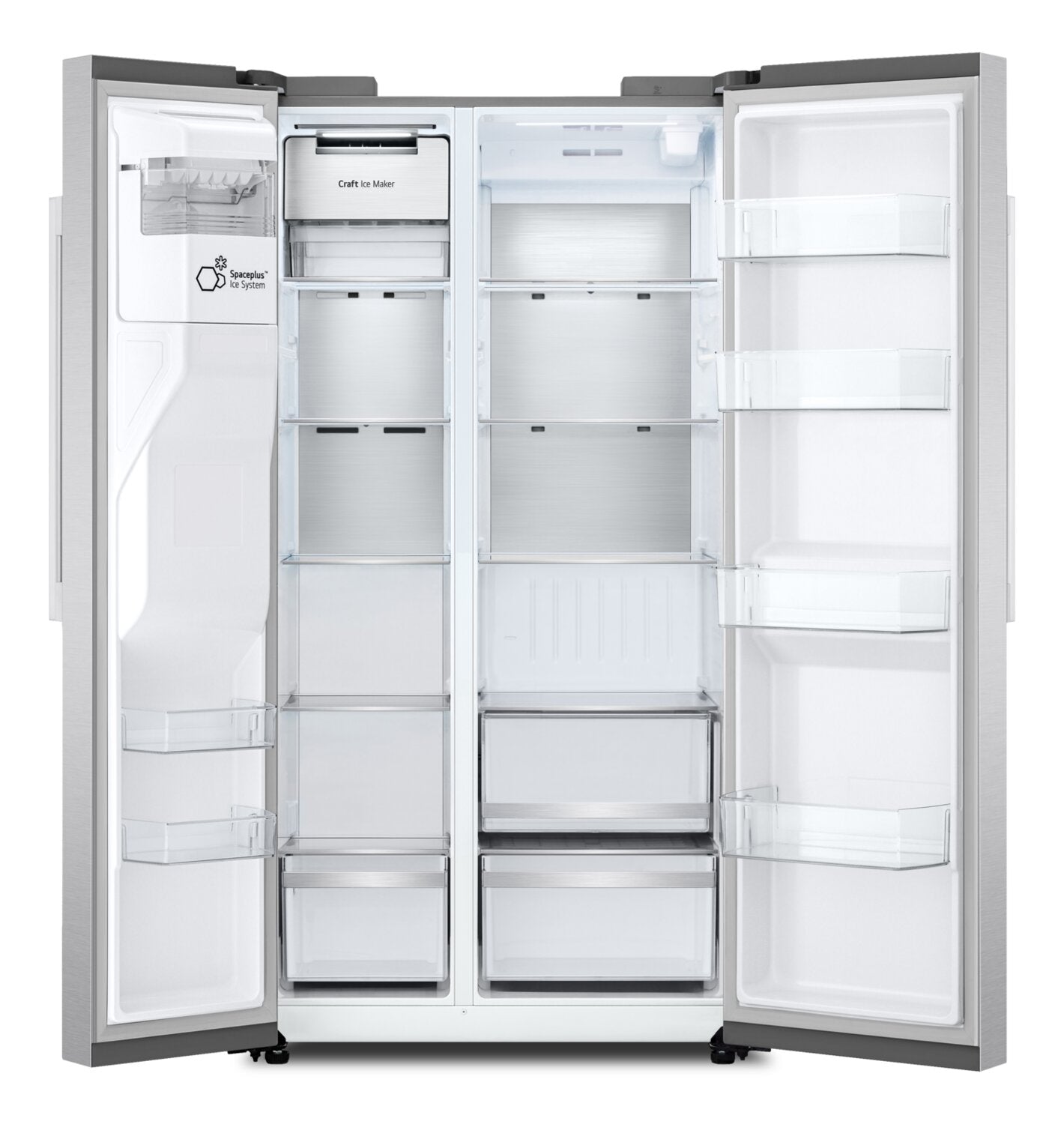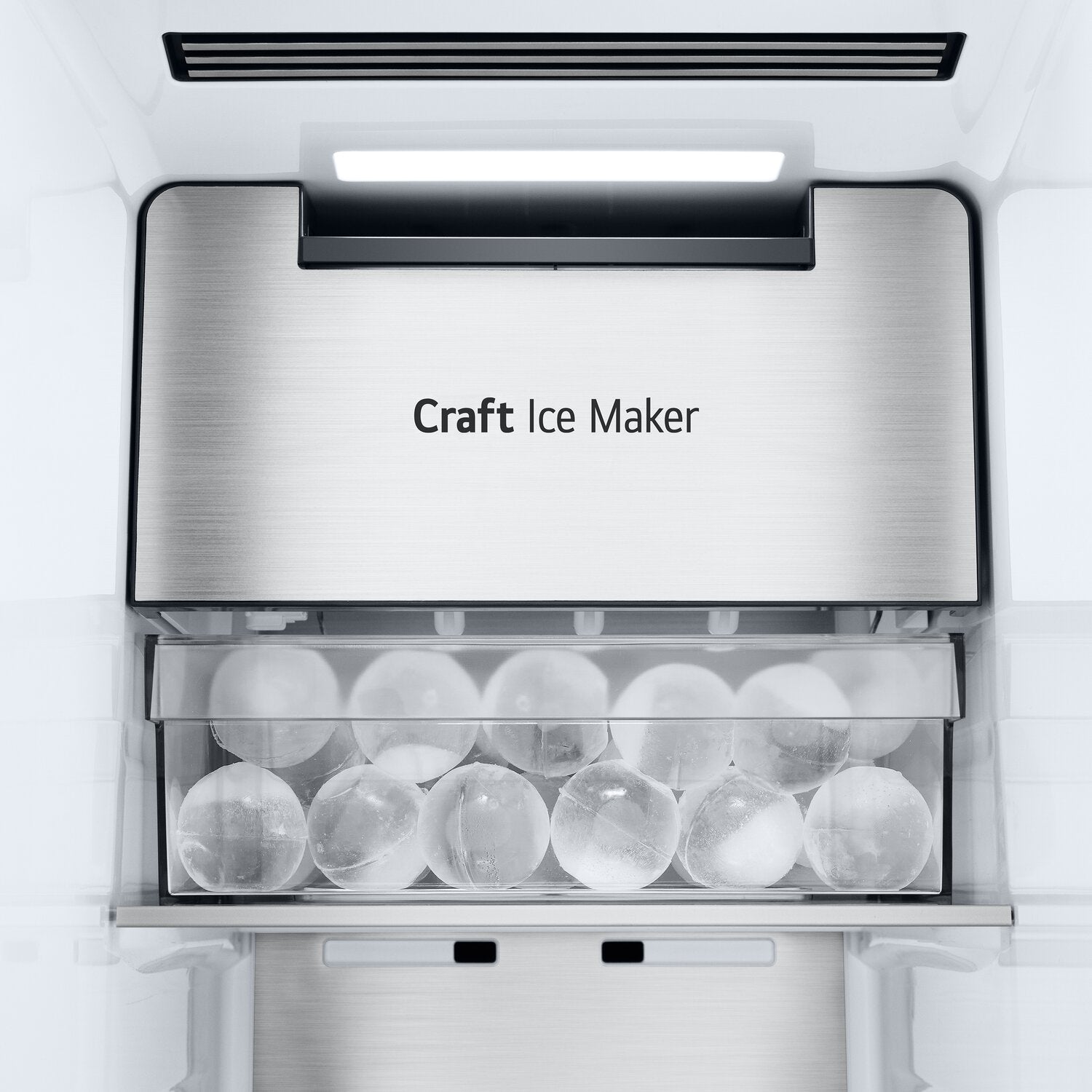 Machine à glaçons double Craft IceMC : Capacité spacieuse de 27 pi3 : Fini résistant aux traces de doigts : Technologie intelligente ThinQMD : Distributeur d’eau et de glaçons externe : Options polyvalentes de rangement : Éclairage éclatant à DEL : |