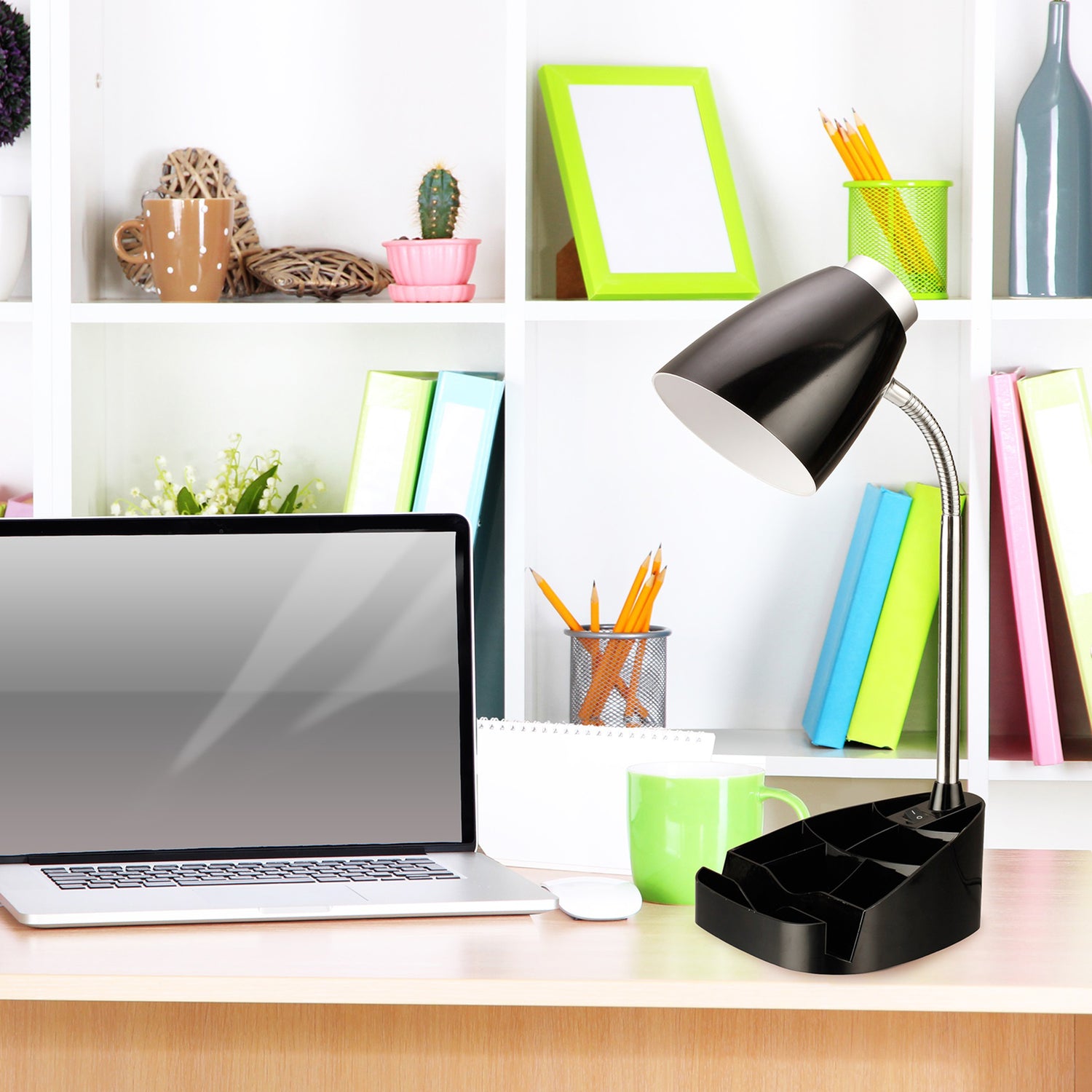 Le style s’allie à la fonctionnalité dans cette lampe de bureau organisatrice amusante avec support pour iPad. Son fini est magnifique et elle est équipée pour contenir plusieurs essentiels requis dans un organisateur de bureau. Le col de cygne flexible chromé vous permet de pointer la lumière exactement là où vous la voulez. L’interrupteur de mise en marche et d’arrêt est situé sur la base pour la commodité. L’organisateur inclut huit compartiments pour ranger les stylos, les crayons, les trombones, etc. Il possède également un endroit où déposer votre iPad, votre livre ou votre cahier pour un visionnement facile. Idéale pour un bureau, une chambre d’enfants ou une chambre d’étudiant.