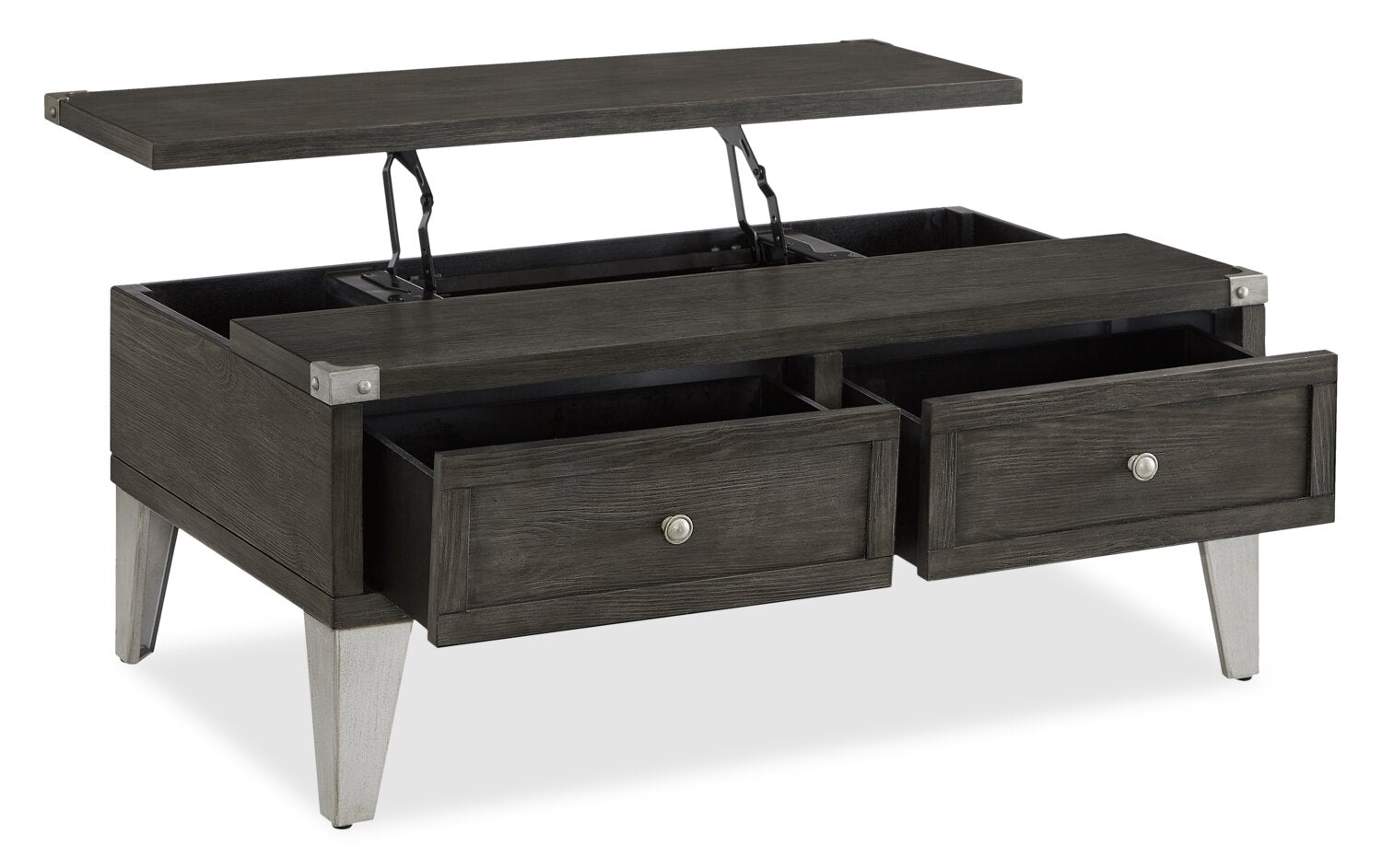 Renseignements supplémentaires | La conception à dessus relevable avec des charnières en métal fluides crée une surface surélevée pour travailler ou manger. |