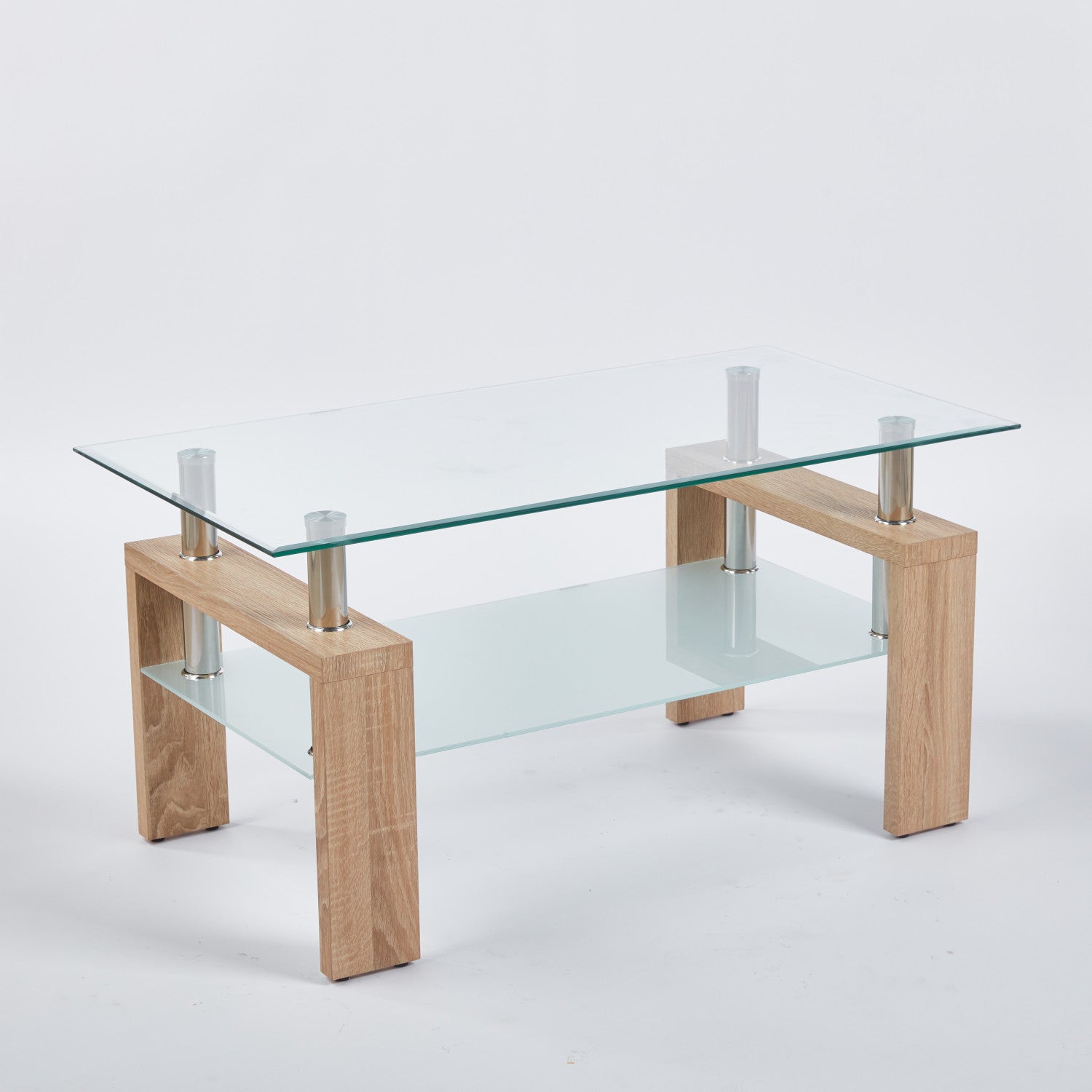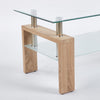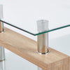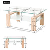 Table basse moderne Lucius au design geometrique en verre trempe avec cadre en metal et verre transparent, naturel