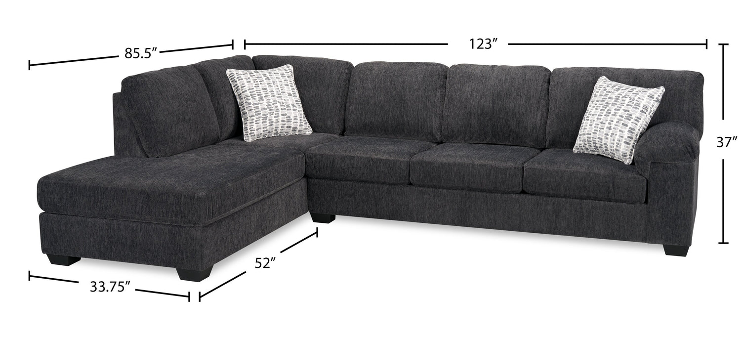 Sofa sectionnel de gauche Morgan 2 pièces fabriqué au Canada en tissu de chenille avec sofa et coussins décoratifs - gris