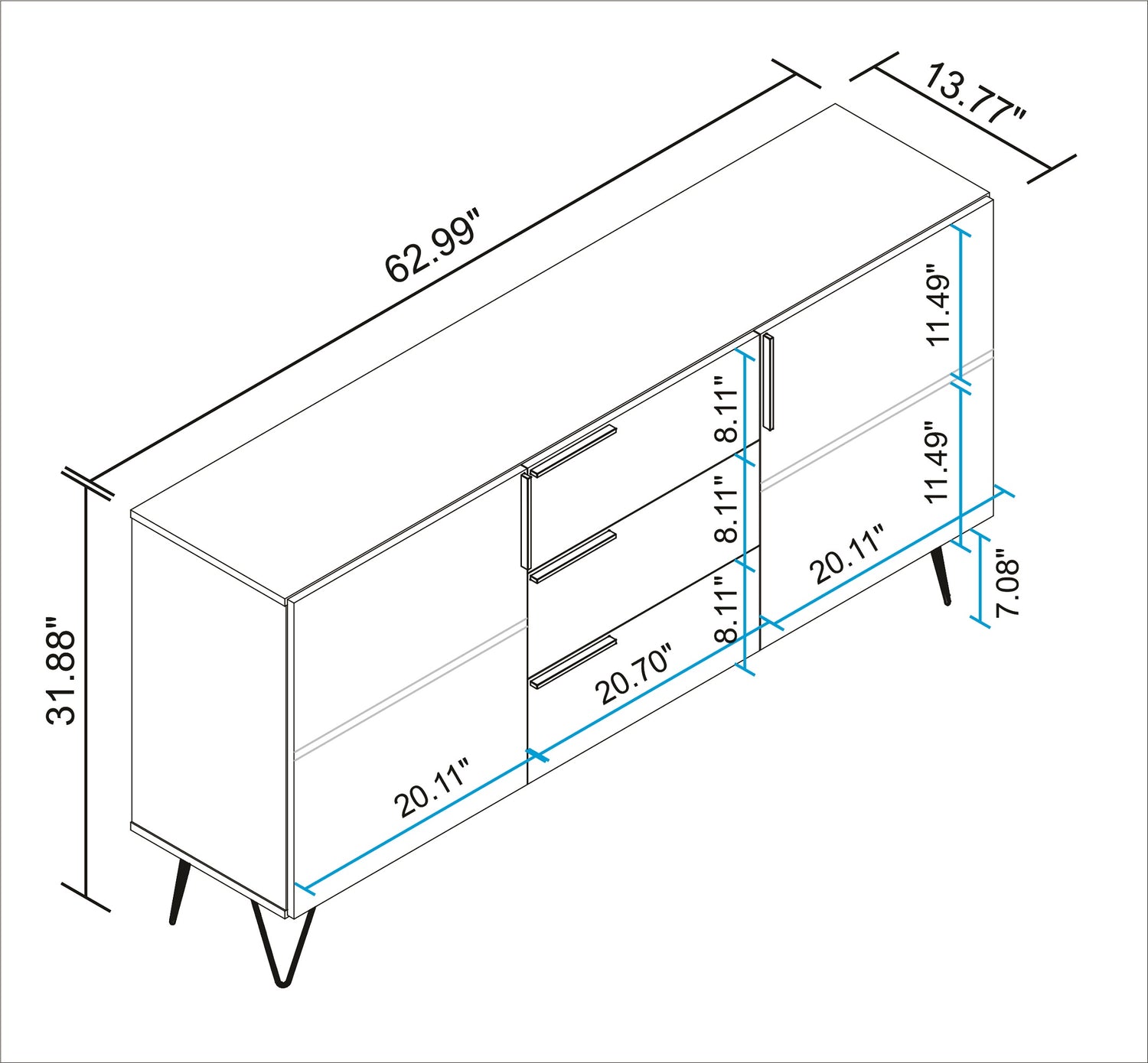 Largeur : 62,99 po (160,0 cm) Hauteur : 31,88 po (81,0 cm) Profondeur : 13,77 po (35,0 cm)