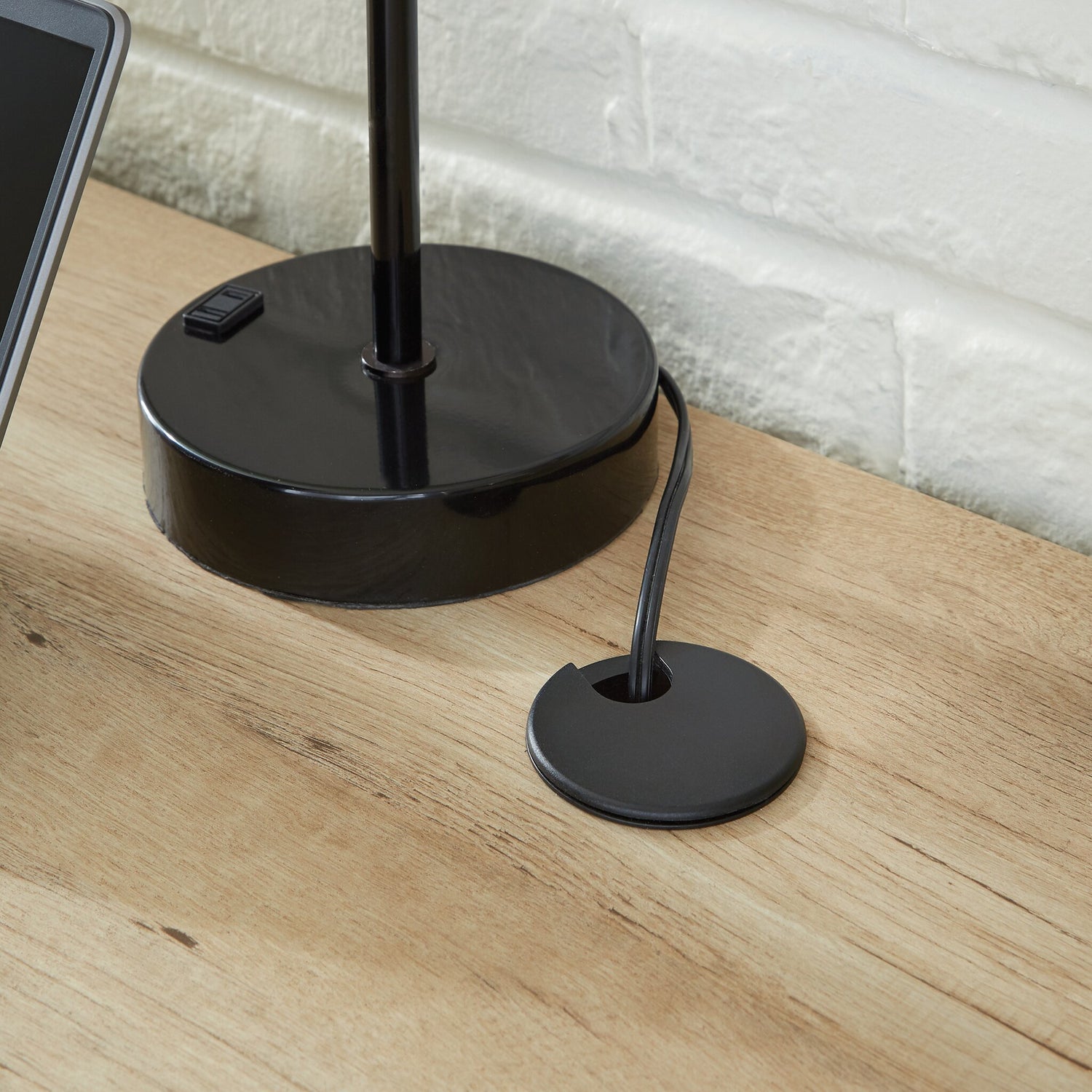 Système de gestion des fils | Deux trous à œillet sur la surface gardent vos câbles bien organisés et hors de la vue. |