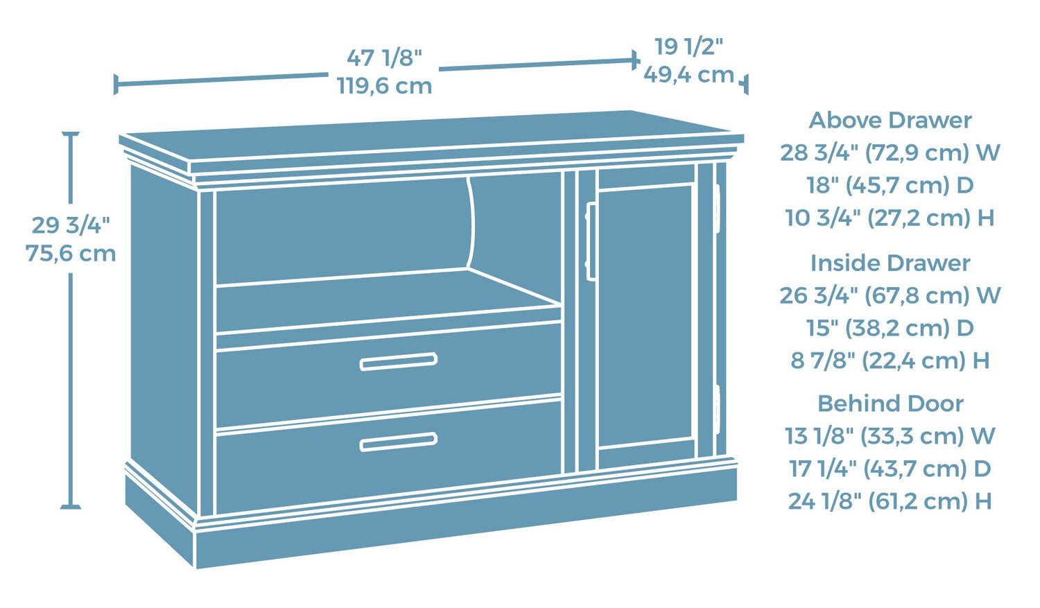 Largeur : 47,09 po (119,6 cm) Hauteur : 29,72 po (75,5 cm) Profondeur : 19,45 po (49,4 cm)