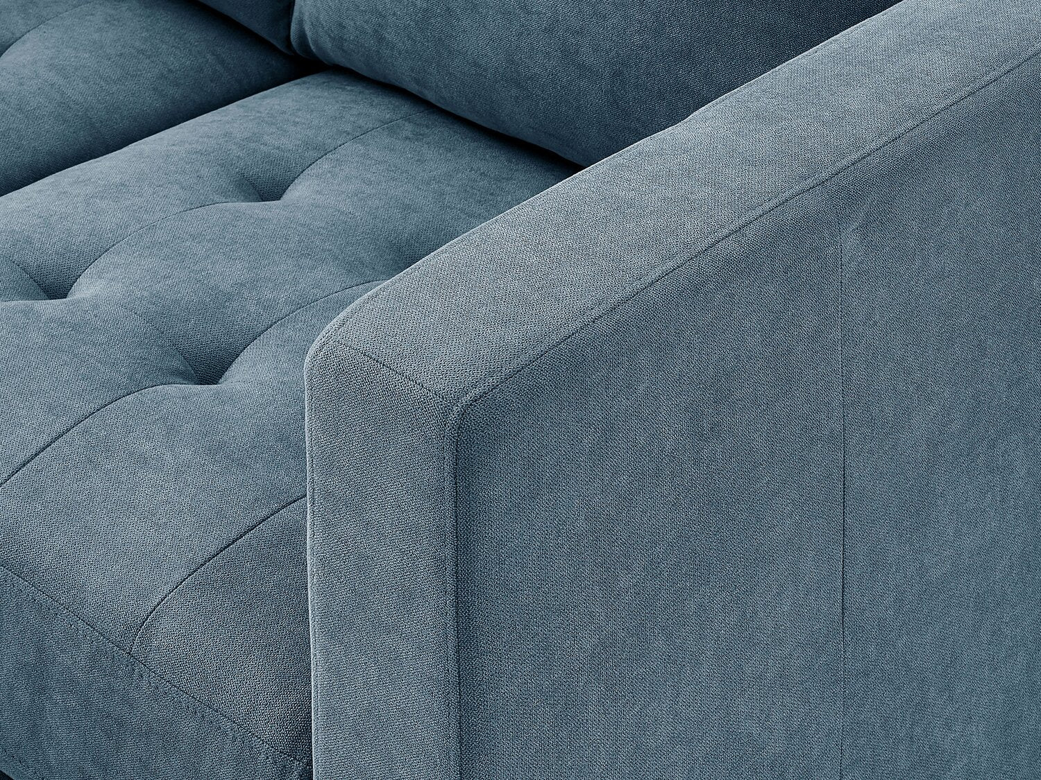 Détails décoratifs | L’armature carrée, les pattes droites et le coussin de siège capitonné possèdent une conception rétro et moderne du milieu du 20e siècle. |