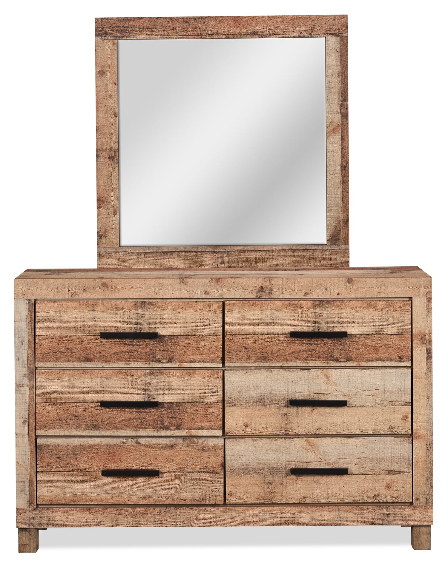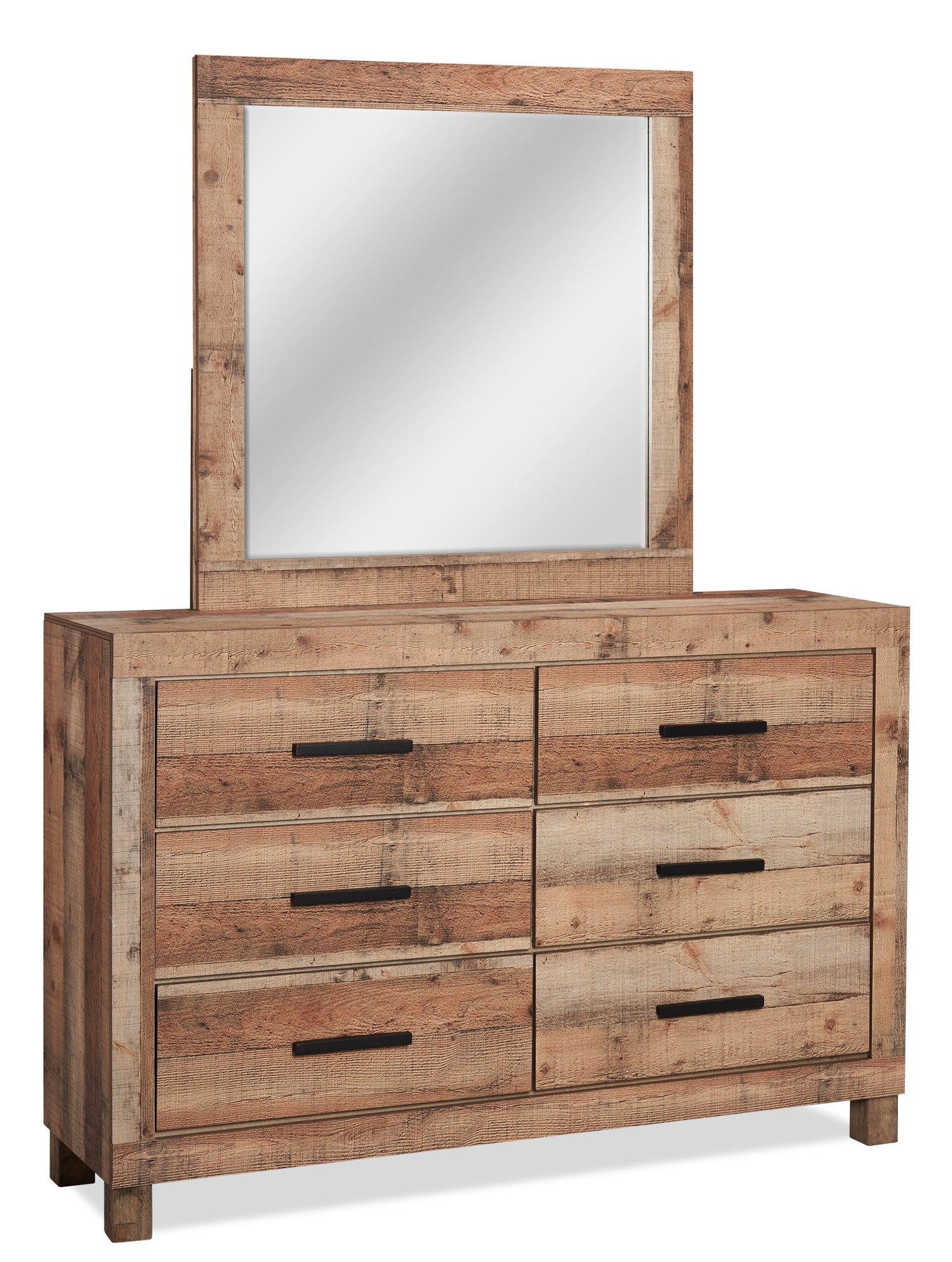 Détails décoratifs | Les panneaux aux finis de différentes nuances plus pâles et plus foncées ajoutent de la variété aux teintes de ce miroir. |