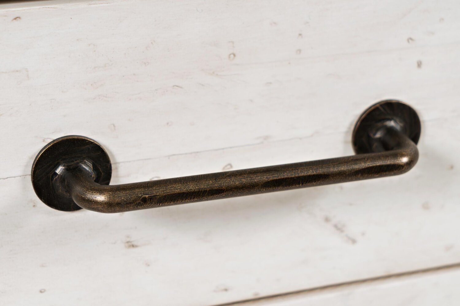 Quincaillerie | Les poignées en métal procurent des détails rustiques à cette table. |