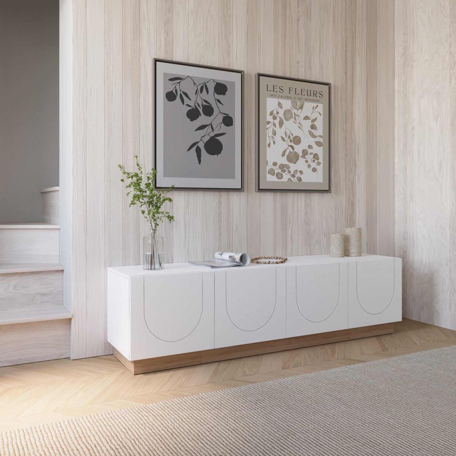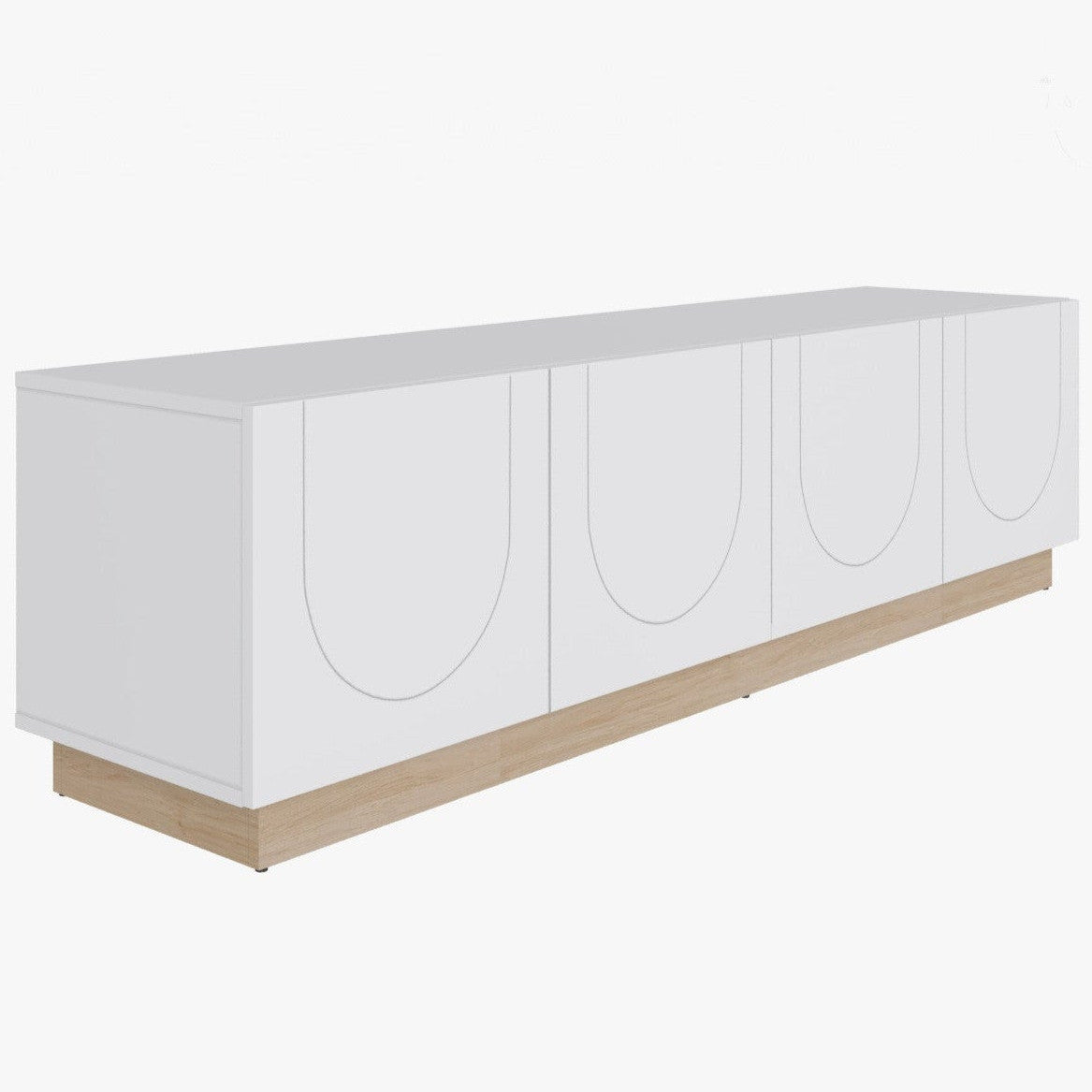 Meuble Tv Moderne Frances Avec 4 Portes, Blanc Laque Brillant