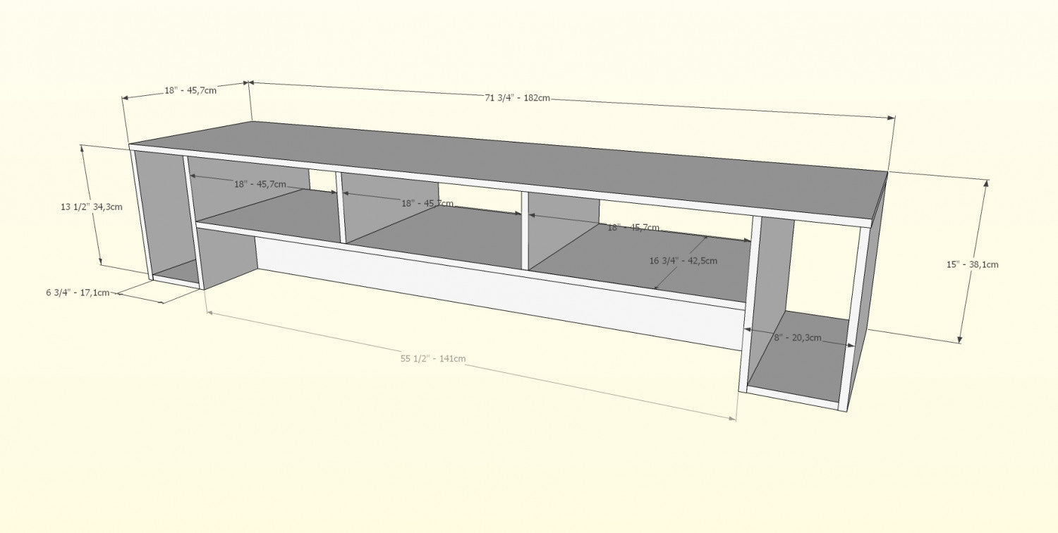 Largeur : 71,75 po (182,2 cm) Hauteur : 16 po (40,6 cm) Profondeur : 18 po (45,7 cm)