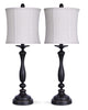 - Les abat-jours en lin tan offrent un superbe contraste avec les bases foncées pour une impression saisissante.