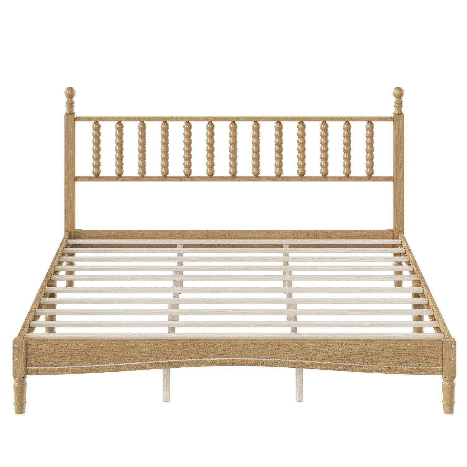 Oliver Lit Plateforme Retro en Bois avec Tete de Lit en Forme de Gourde et Support en Lattes en Bois Robustes, Taille King, Naturel
