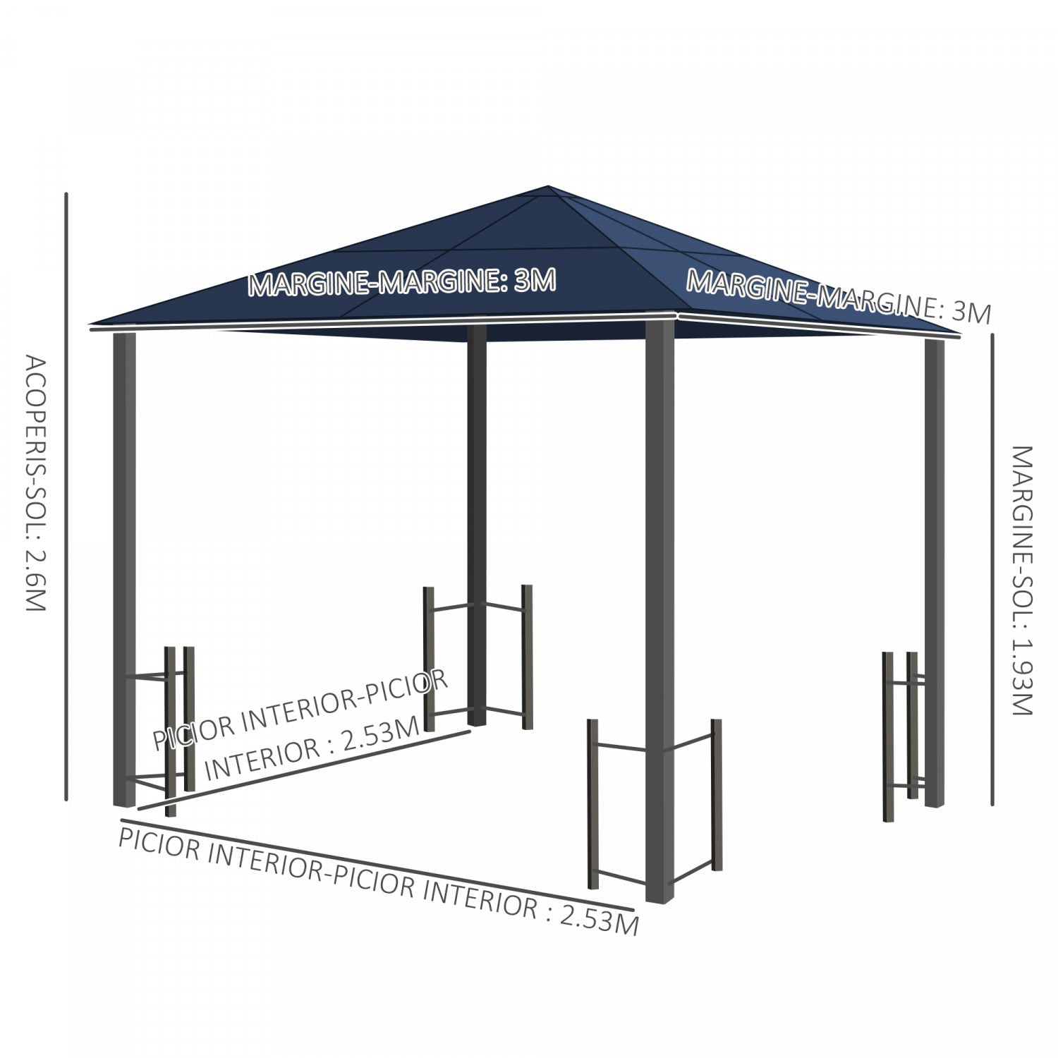 Outsunny 10' X 10' Tonnelle Gazebo Exterieur A Toit Rigide Panneaux De Polycarbonate Avec Cadre En Aluminium, Moustiquaires Et Rideaux Noir