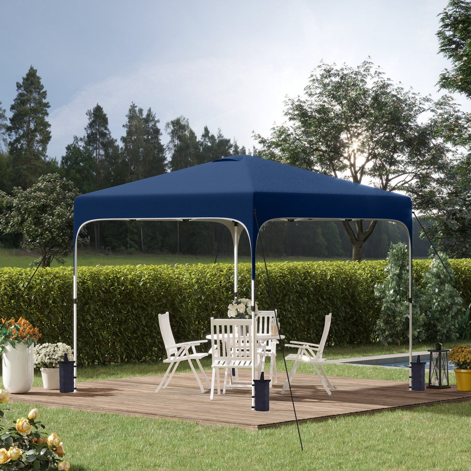Outsunny 9.8' X 9.8' Pop Up Gazebo Tente Pliable Avec Sac De Transport Et Roues 4 Sacs De Poids Pour Les Jambes Et 3 Niveaux De Hauteur Ajustable Pour L'exterieur Le Jardin Le Patio Bleu Marine