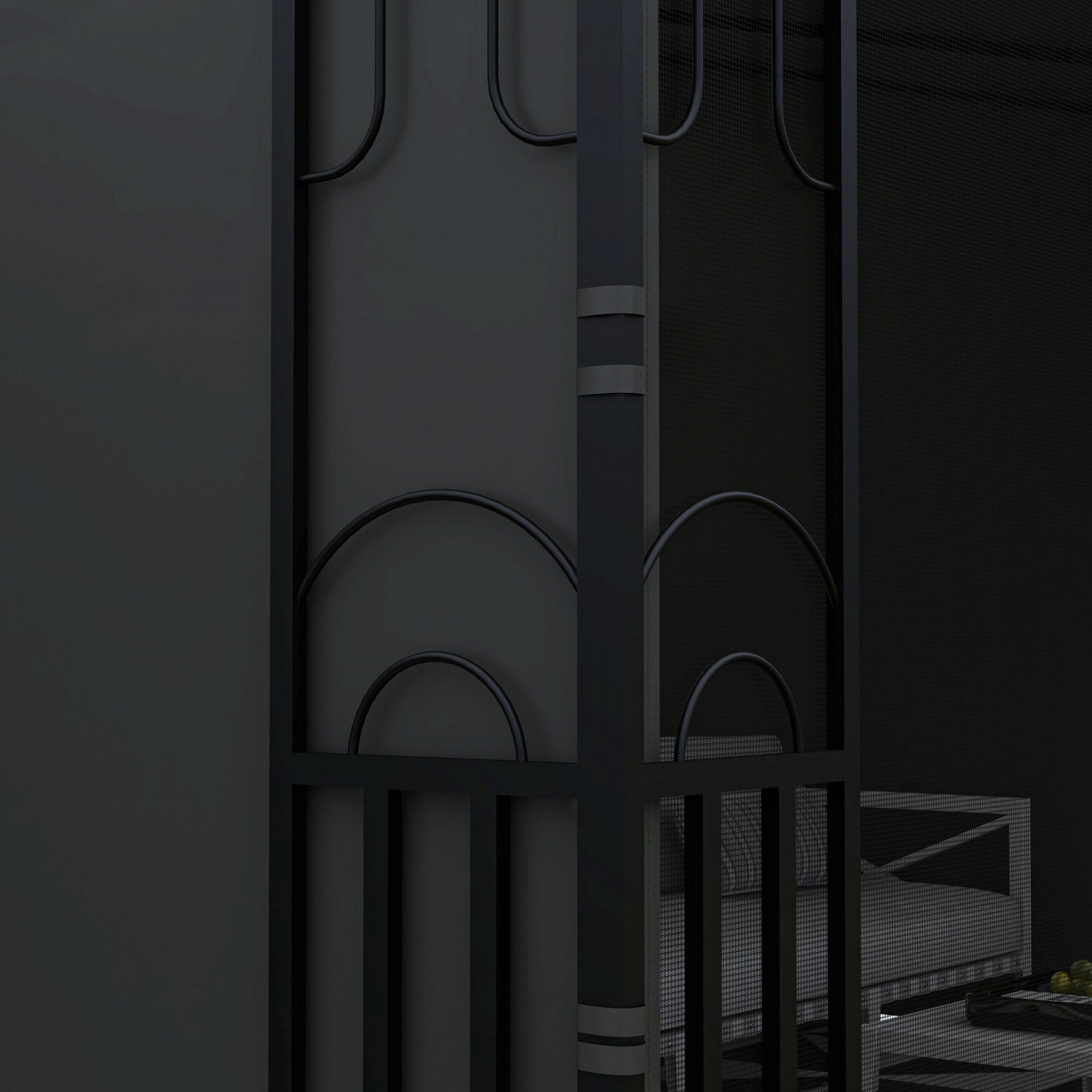 Key Features | - Fixe au mur, il permet de faire sortir l'interieur; - Deux rideaux et deux filets detachables peuvent bloquer le vent et creer un espace d'intimite; - L'auvent de pergola en polyester enduit de PA protege contre les UV; - Les trous de drainage sont tres pratiques; - Structure en acier avec revetement en poudre pour un noyau resistant; - Quatre piquets de sol, quatre vis d'expansion murale et deux vis d'expansion au sol inclus; - Assemblage requis; |
