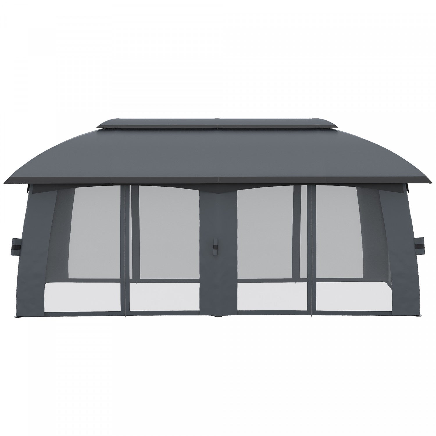 Outsunny Tonnelle De Terrasse 10' X 20', Abri Exterieur Avec Filet Et Rideaux, Toit Ventile, Cadre En Acier Pour Jardin, Pelouse, Arriere-cour Et Terrasse, Gris Fonce