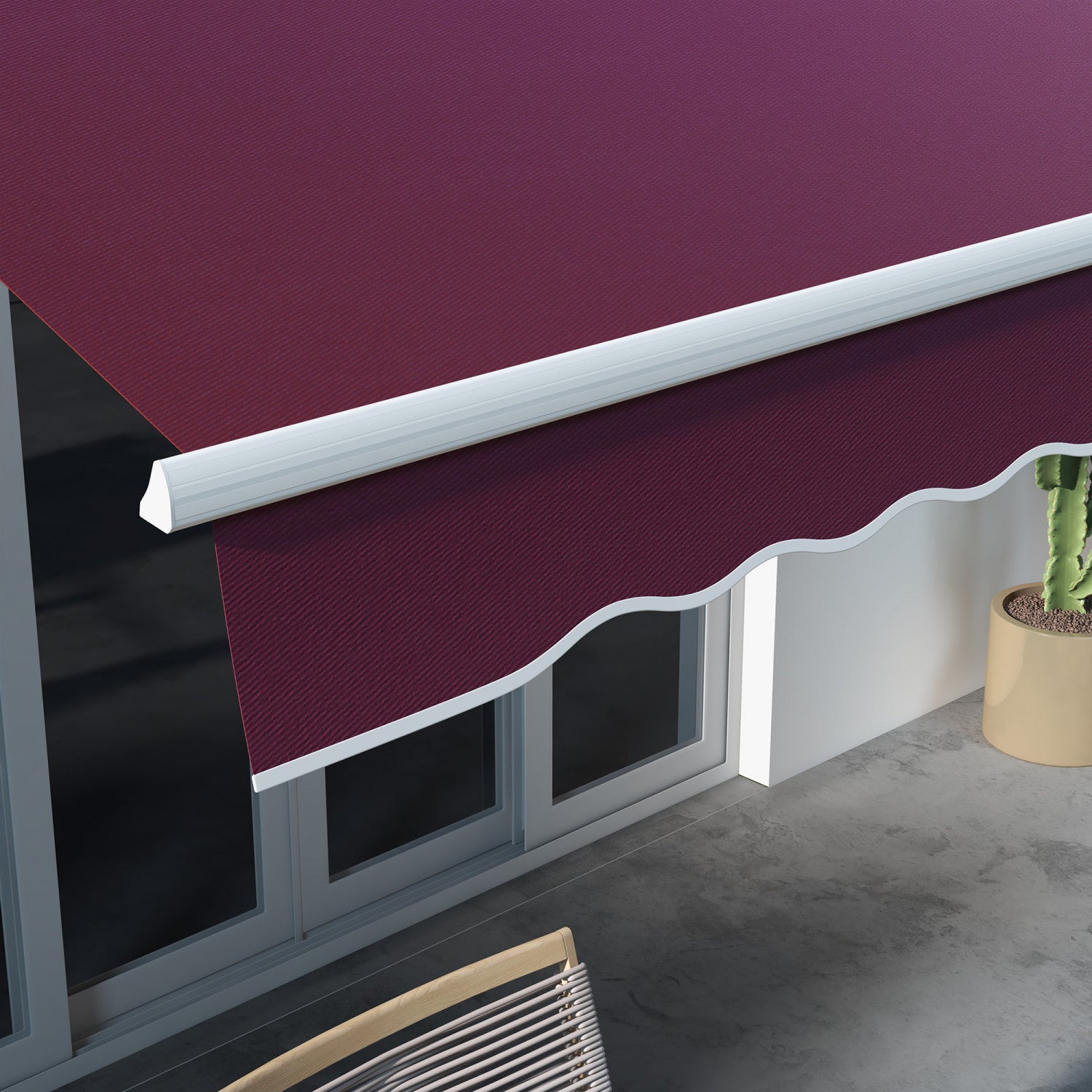 Renseignements supplémentaires | - Couleur : Rouge vin - Materiaux : polyester 280 GSM, aluminium, metal - Dimensions globales : 116,9" L x 98,4" P (297 x 250 cm) - Manivelle : 59,1" L (150 cm) - Longueur du cordon d'alimentation : 4,4 pi (1,35 m) - Hauteur d'installation recommandee : 8,2 a 11,5 pieds (2,5 a 3,5 m) - Tension nominale : AC 110 V-240 V, 50/60 Hz - Niveau de protection contre le vent : 2 - Etiquette de l'article : 840-266V82WR ; |